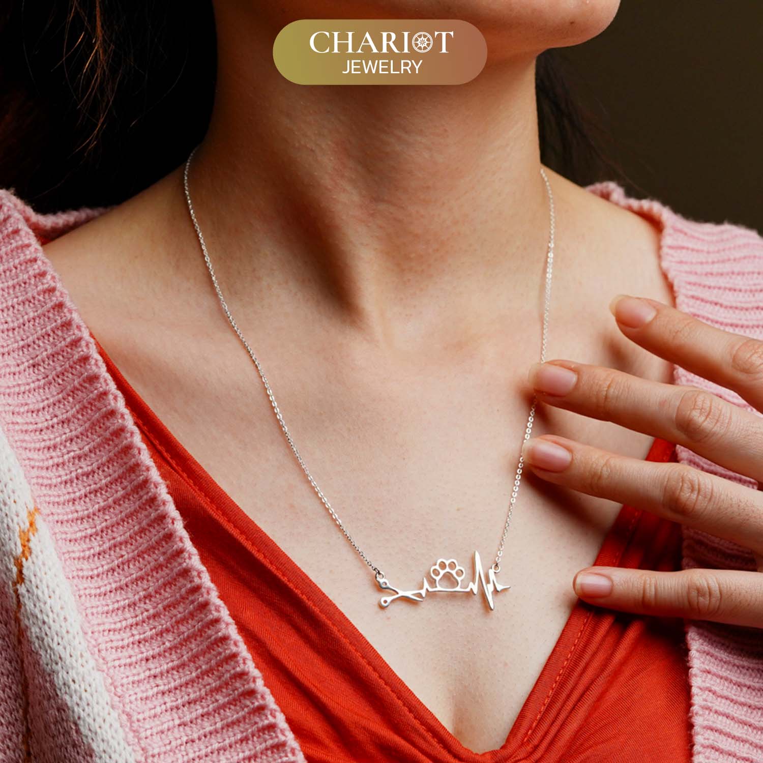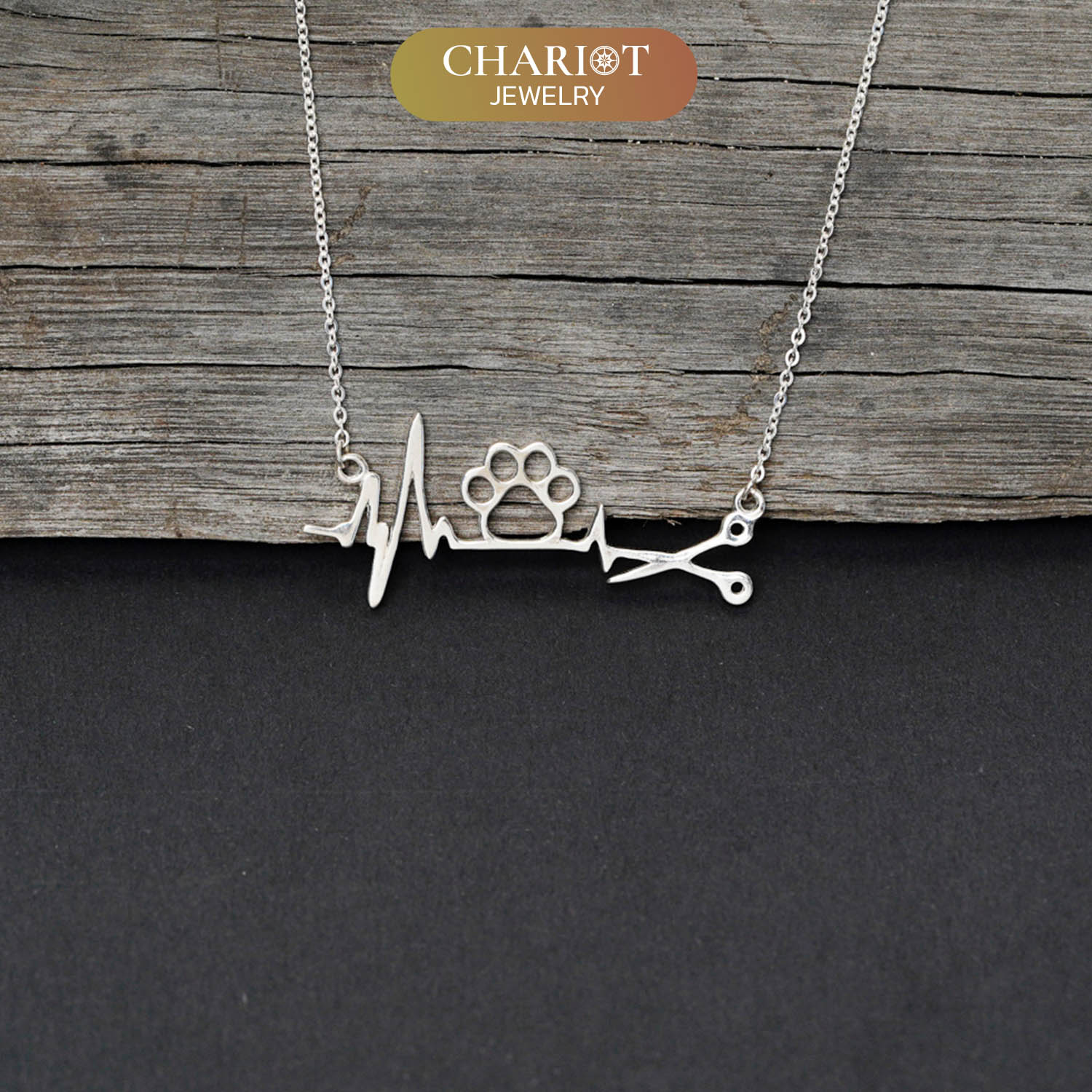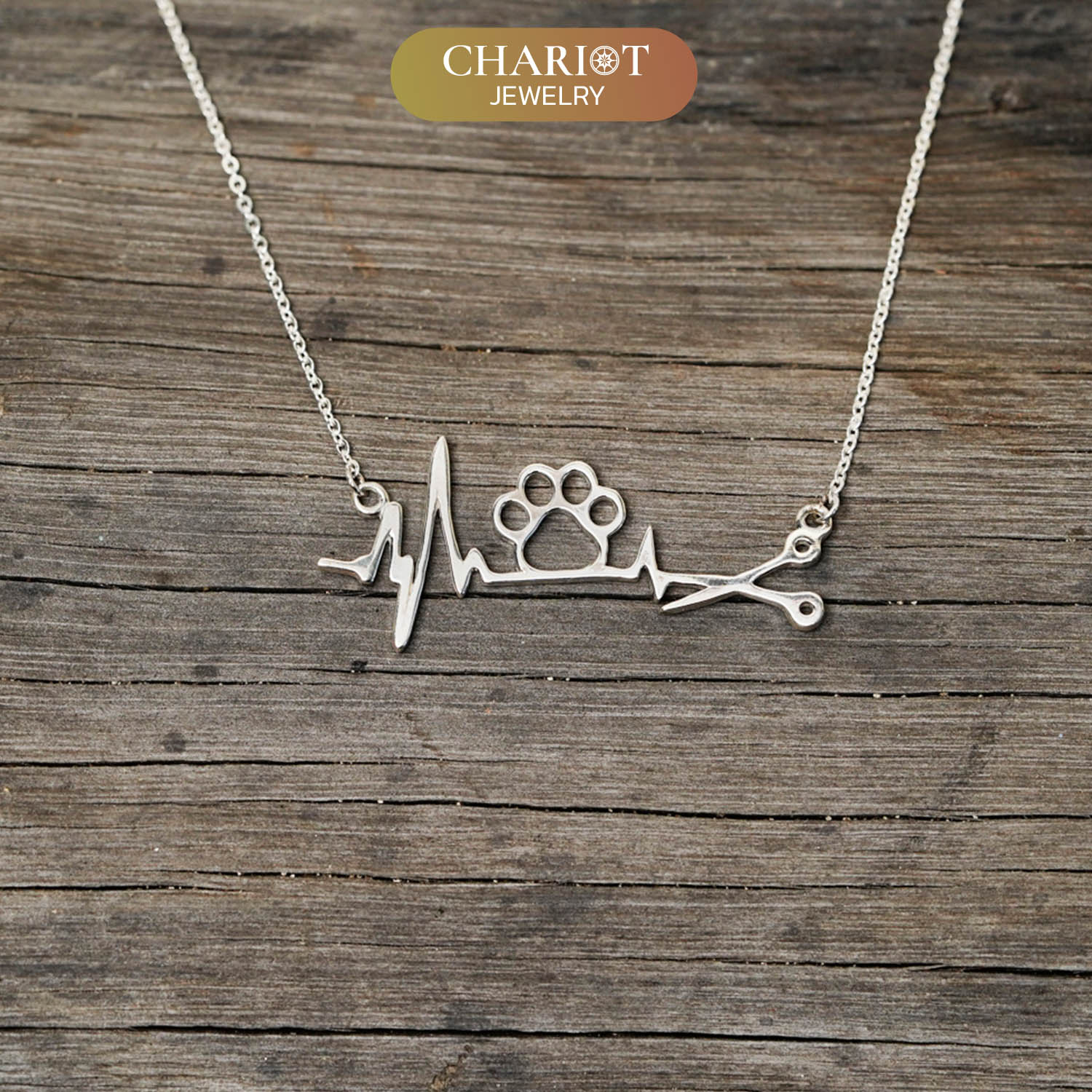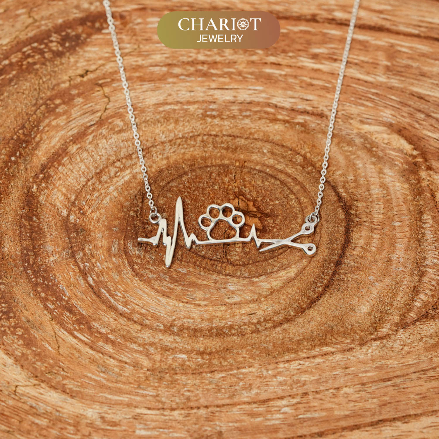 Additionally, the pendant is engraved with a paw print, adding a distinctive and sentimental touch that evokes cherished memories with your four-legged friend. The fusion of the sleek heartbeat lines with the intricate paw print detail offers a sophisticated yet meaningful style, making it a perfect gift for those who value and treasure their heartfelt connections.