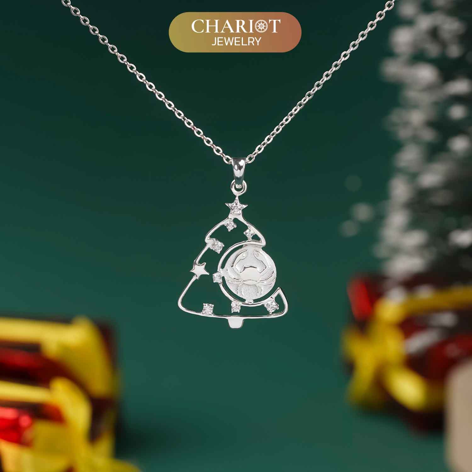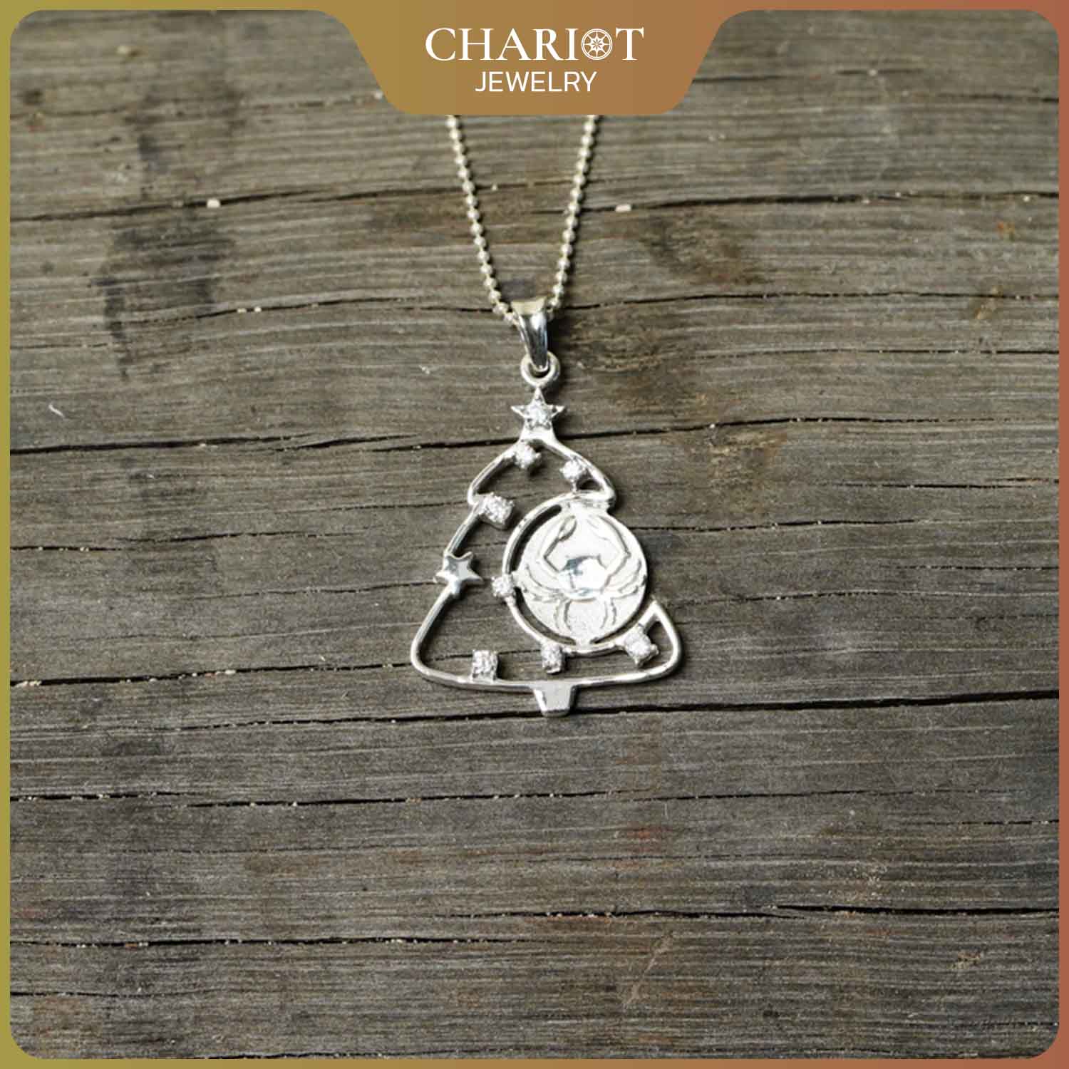 The Cancer Zodiac Christmas Necklace combines the beauty of the Cancer Zodiac sign with the festive atmosphere of Christmas. The special design features a pendant shaped like a Christmas tree with a small star on top.