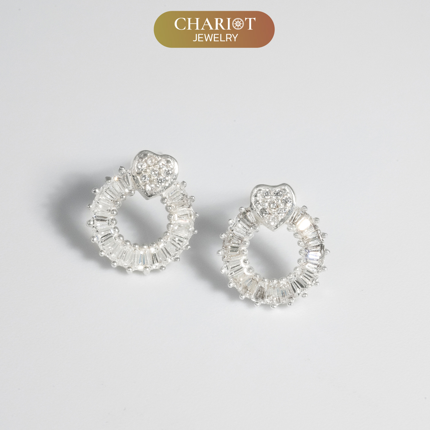 Adorned with a shimmering heart design composed of cubic zirconia stones, the Celestial Circle Earrings create a radiant and captivating focal point. Gracefully dangling below each heart motif is a delicately crafted circle of stones, adding balance and a sense of completeness to the design.