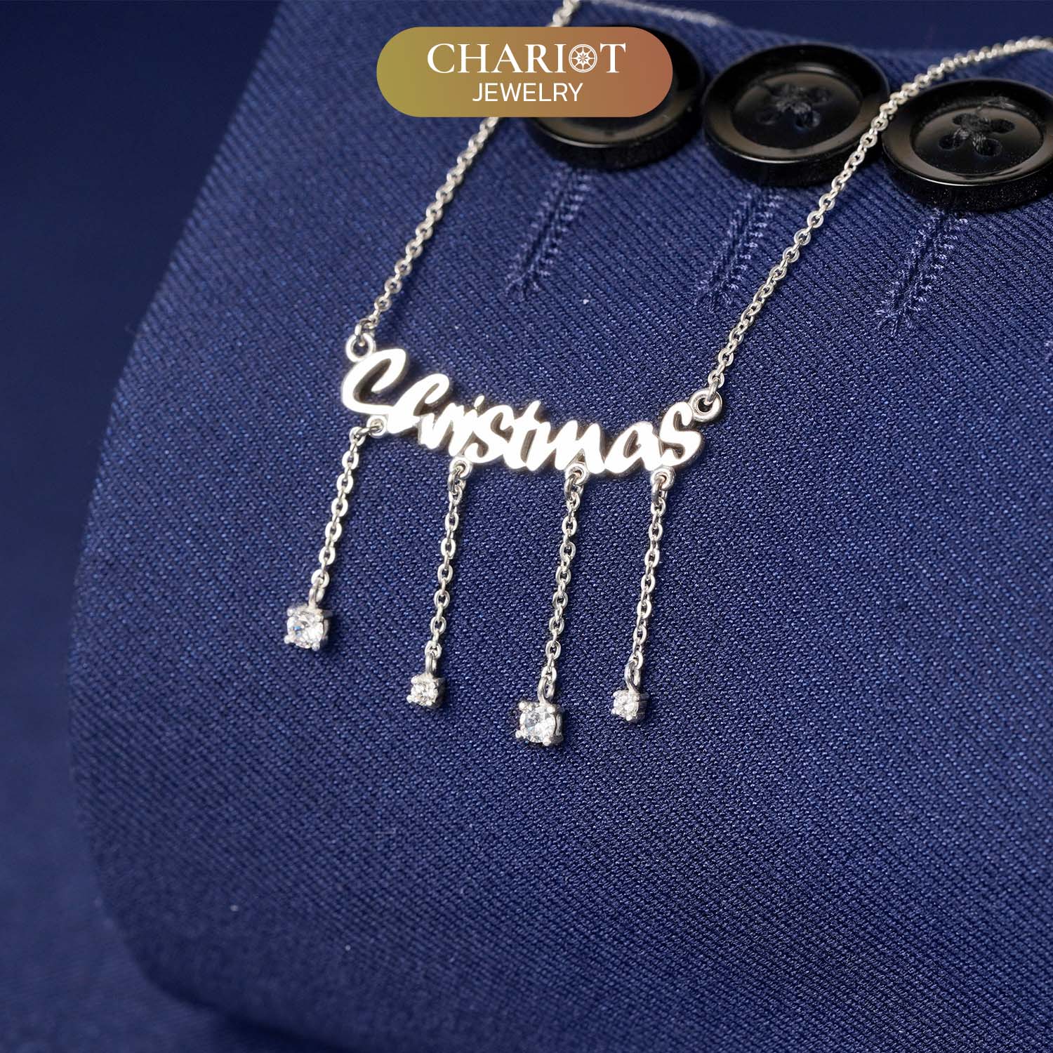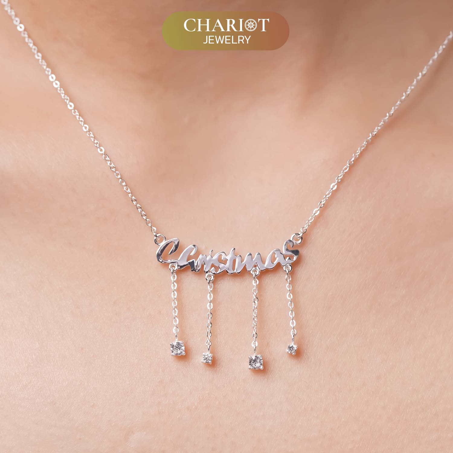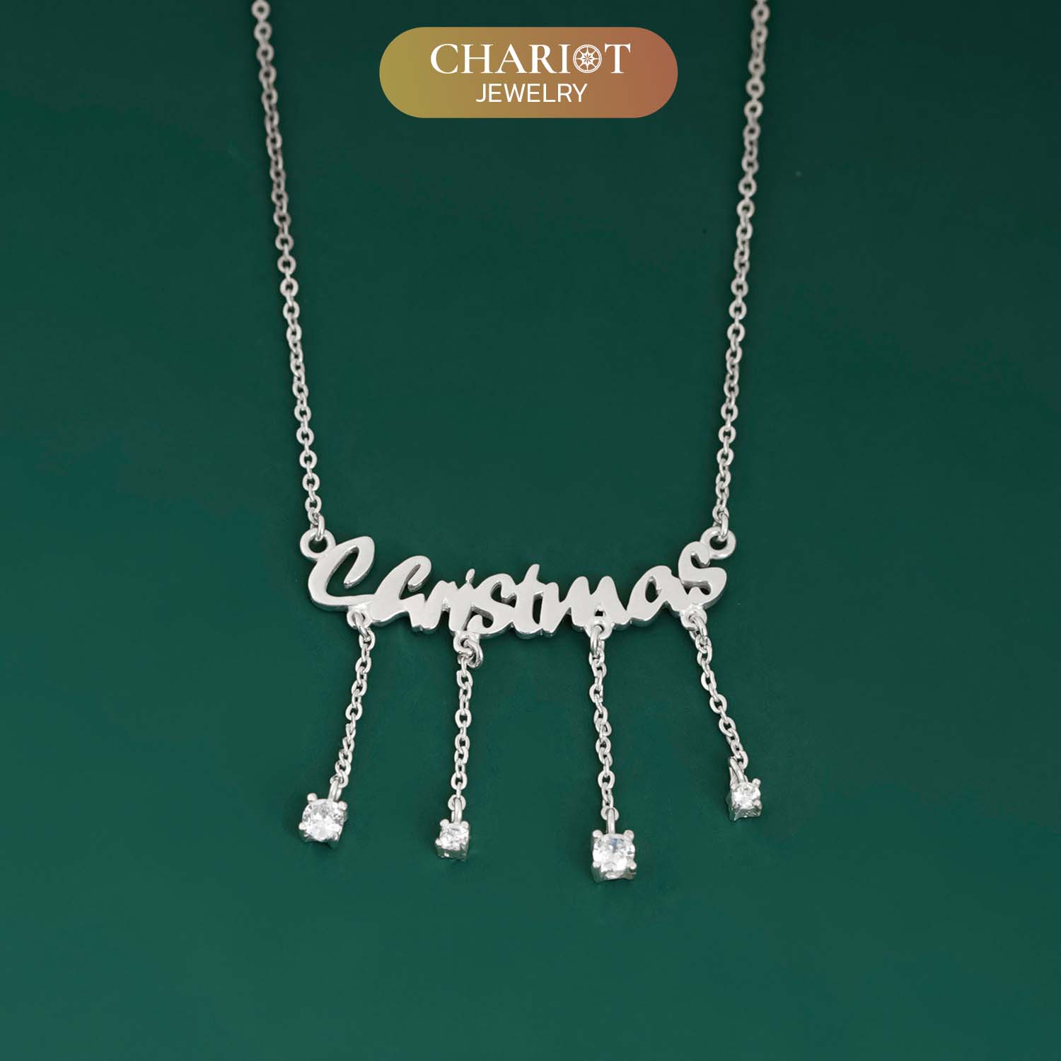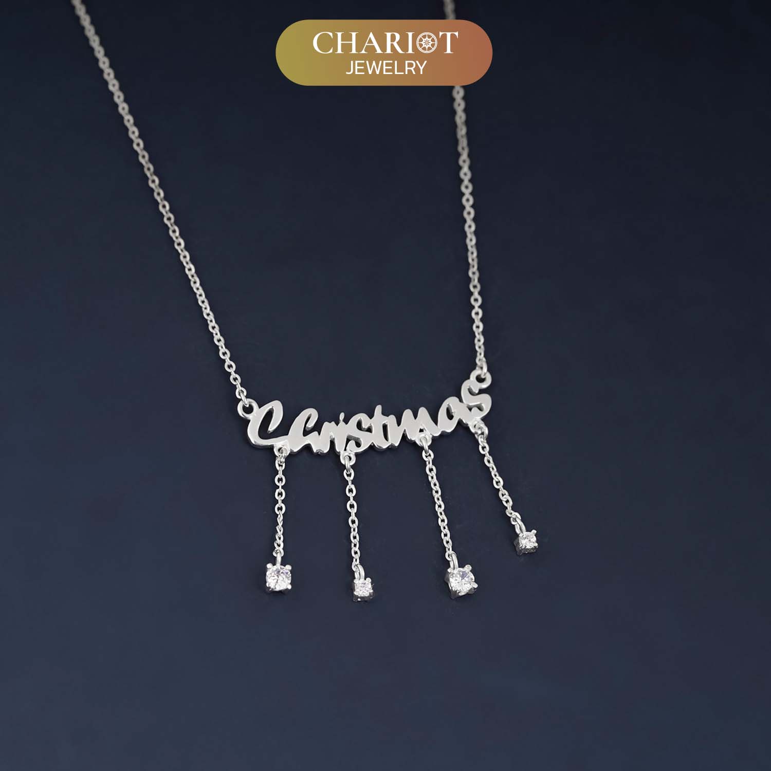 The Christmas Twinkle Necklace features meticulously crafted solid “Christmas” lettering as the main design, with 4 sparkling stones hanging underneath for an interesting look. The entire product is made of high-quality 925 silver, providing luxury and durability. This necklace is part of the Winter collection.