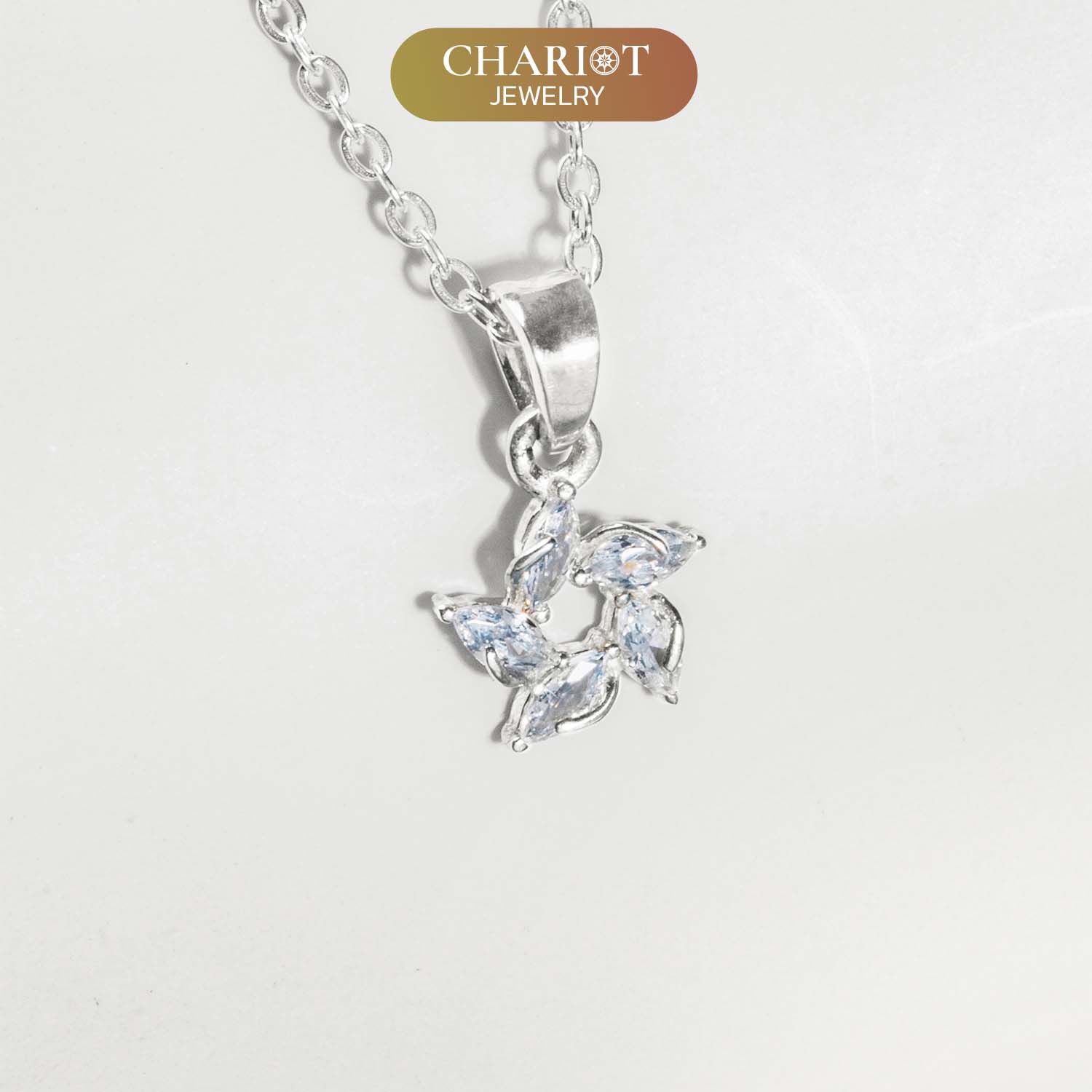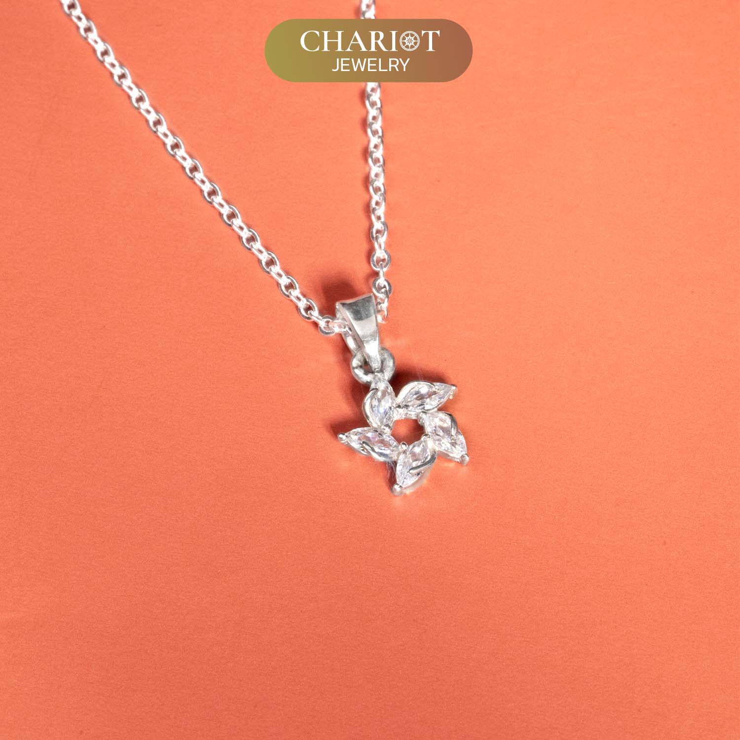 Crafted from high-quality sterling silver and safe for sensitive skin. Exquisitely designed daisy pendant with sparkling stones, representing eternal beauty and happiness.