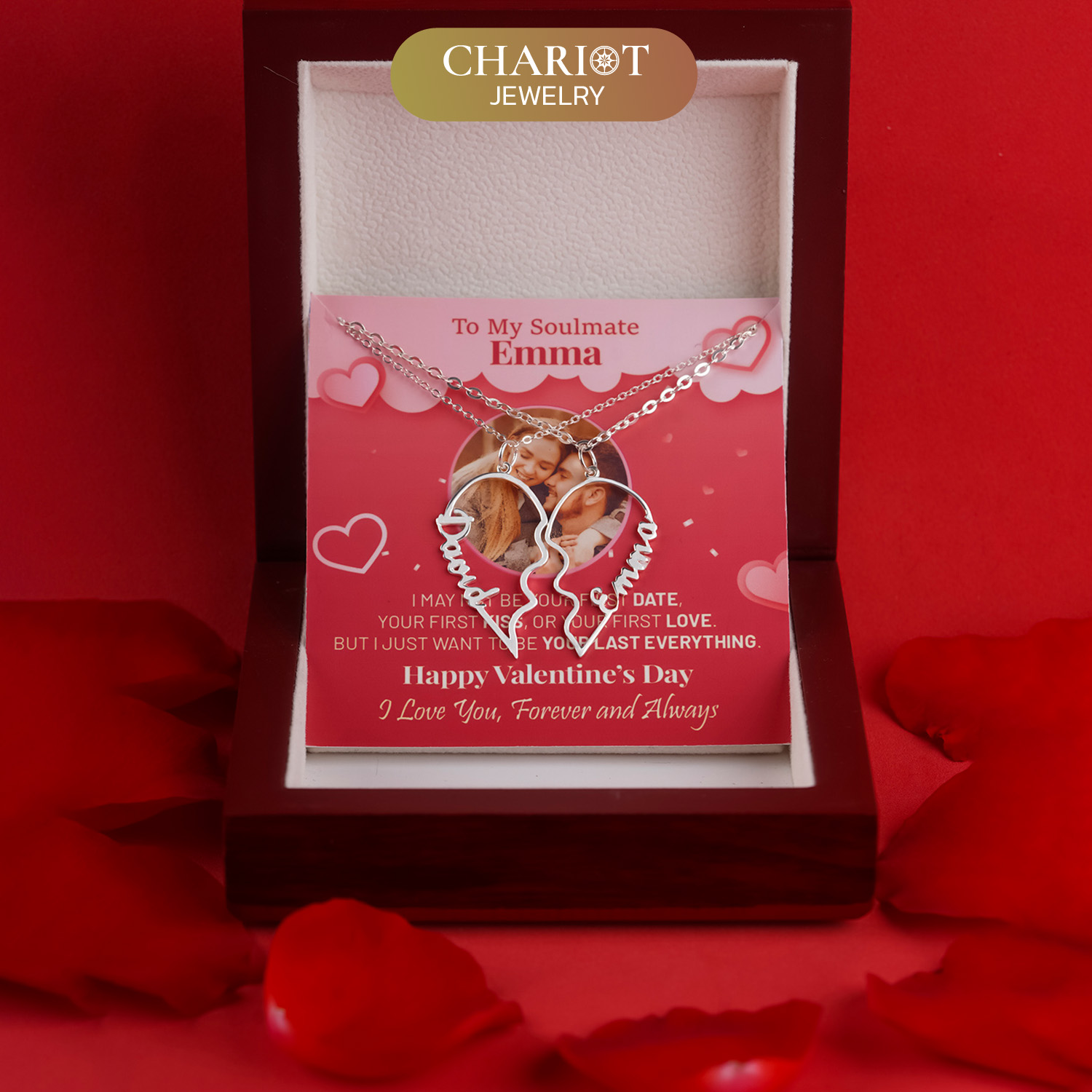 The Eternal Name Heart Necklace is a captivating testament to the enduring power of love. This unique pendant features two interlocking heart-shaped halves, each adorned with the name of a cherished loved one. Symbolizing the unbreakable bond between two souls, the necklace serves as a reminder that even when apart, hearts remain connected and love remains whole.