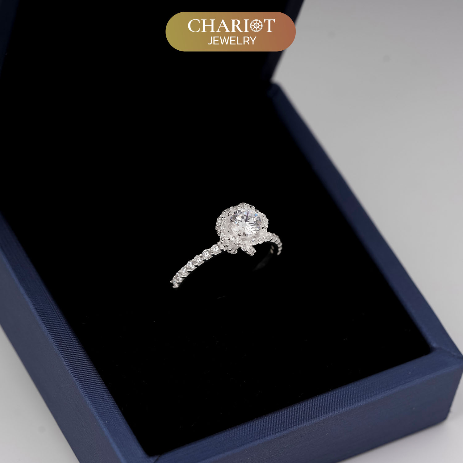 Shining like a radiant rose, the Rose Bloom Ring is a jewelry masterpiece for those who adore elegance and sophistication. At its center is a large cubic zirconia stone, perfectly crafted to gleam brilliantly like morning dew on a petal. Surrounding it are smaller sparkling stones meticulously set along the band, creating a shimmering light effect that highlights the unique beauty of the design.