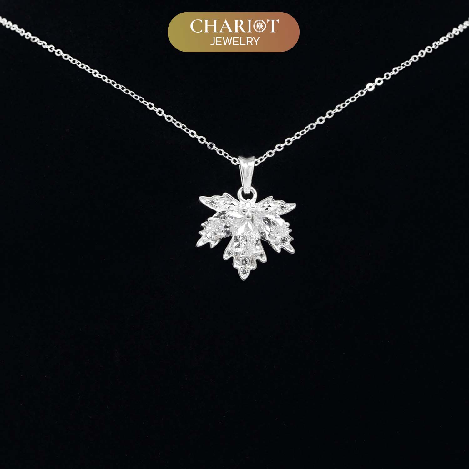 The Maple Elegance Necklace is a stunning piece of jewelry crafted from high-quality 925 sterling silver. Its delicate design features a graceful maple leaf motif, meticulously adorned with sparkling cubic zirconia stones. The necklace exudes a timeless elegance that complements a variety of styles and occasions. Whether you’re dressing up for a special event or adding a touch of sophistication to your everyday look, this necklace is sure to make a lasting impression.