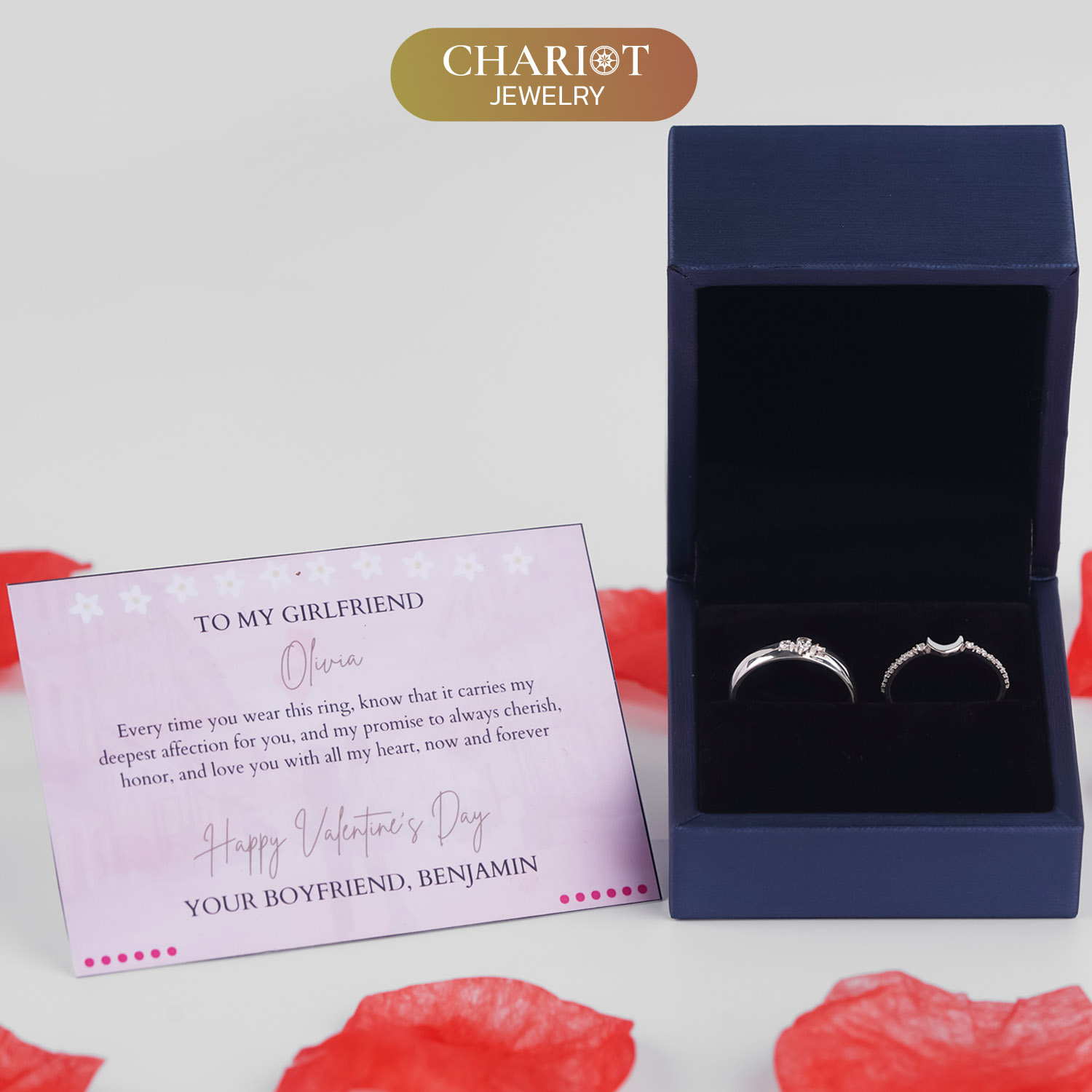 Like a poetic night sky, the Moonlight Promise Duo Rings symbolize an eternal promise of love and devotion. Crafted from premium 925 sterling silver, this pair shines brilliantly and endures over time, representing timeless love.