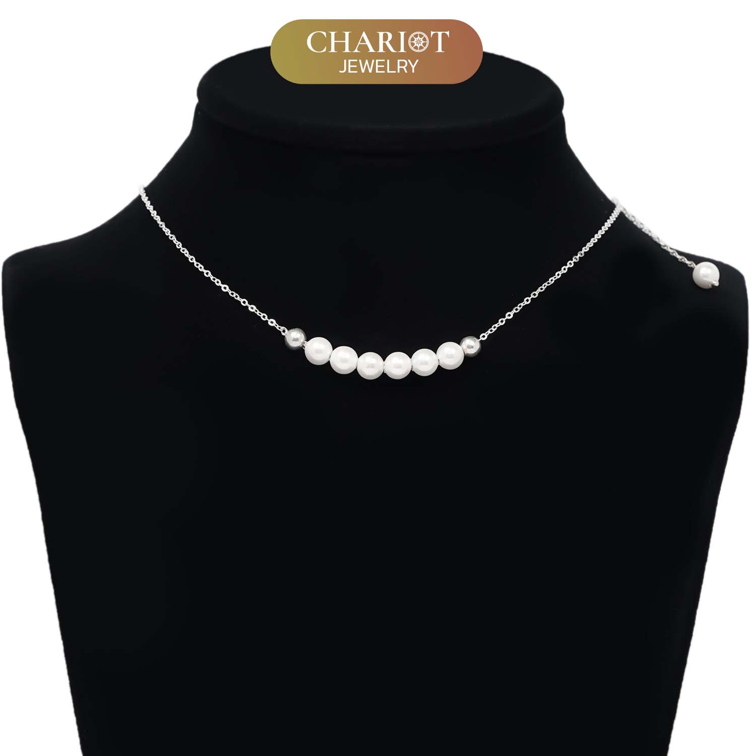 The Pearl Lariat Necklace embodies the essence of sophistication with its captivating and unique design. Exquisite pearls adorn the center of the necklace, with a single smaller pearl suspended by a delicate silver chain, creating a mesmerizing dance of light with every movement.