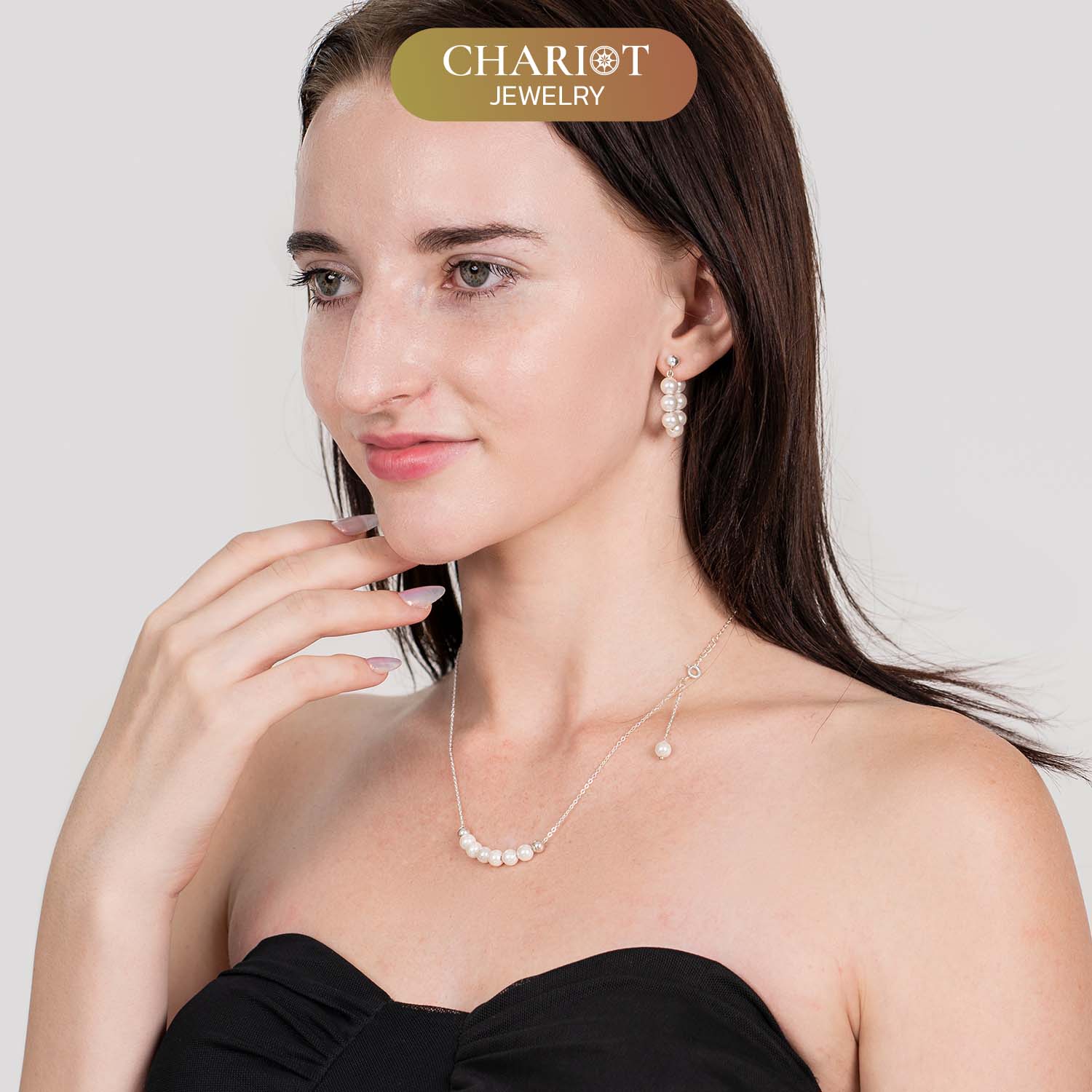 Crafted from 925 sterling silver, the piece exudes an air of purity and luxury, perfectly complementing the radiant luster of the pearls.