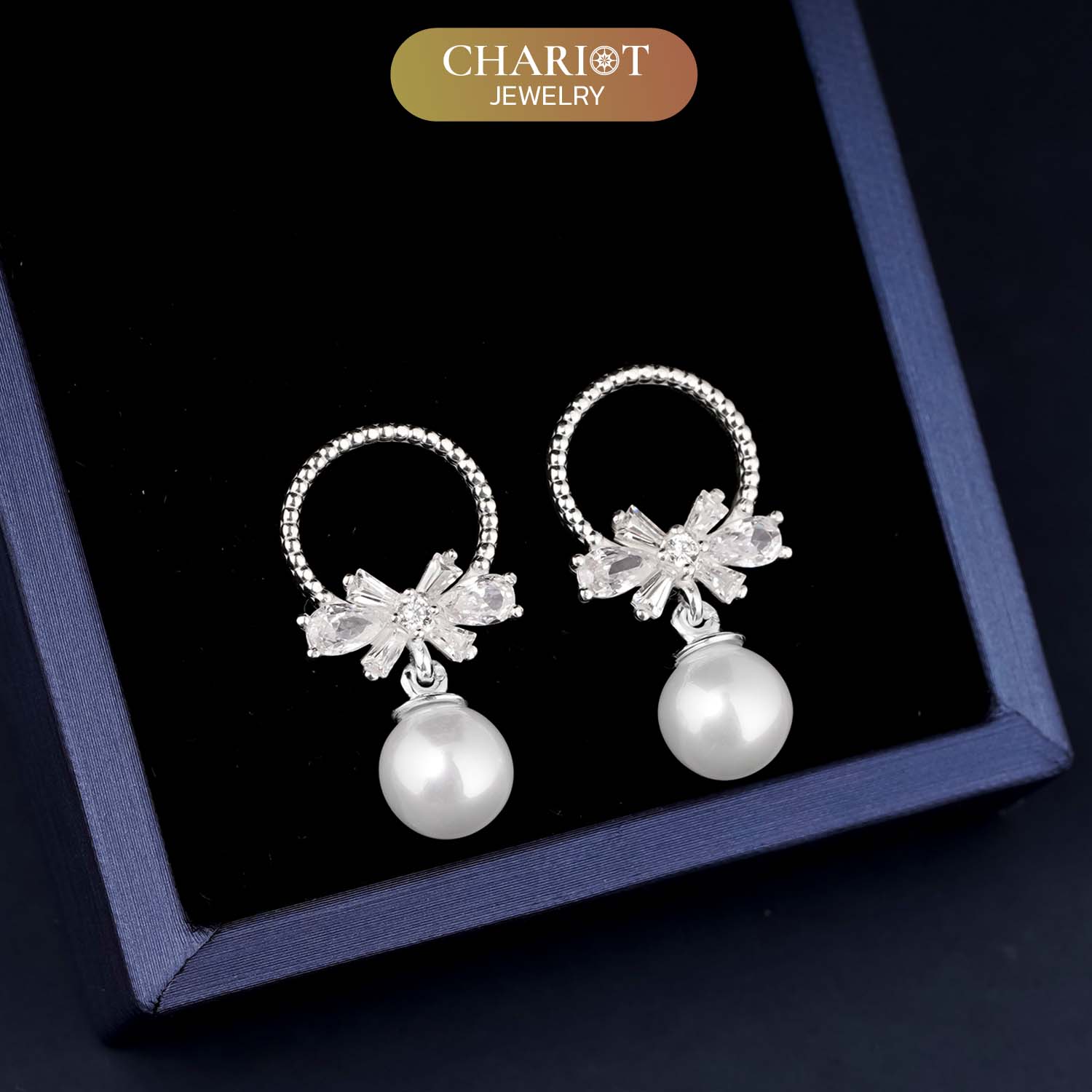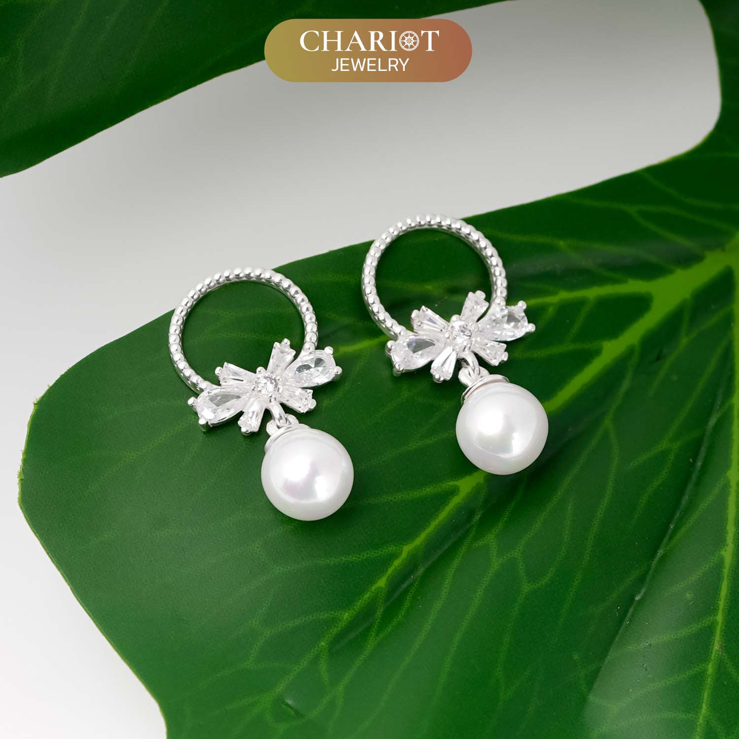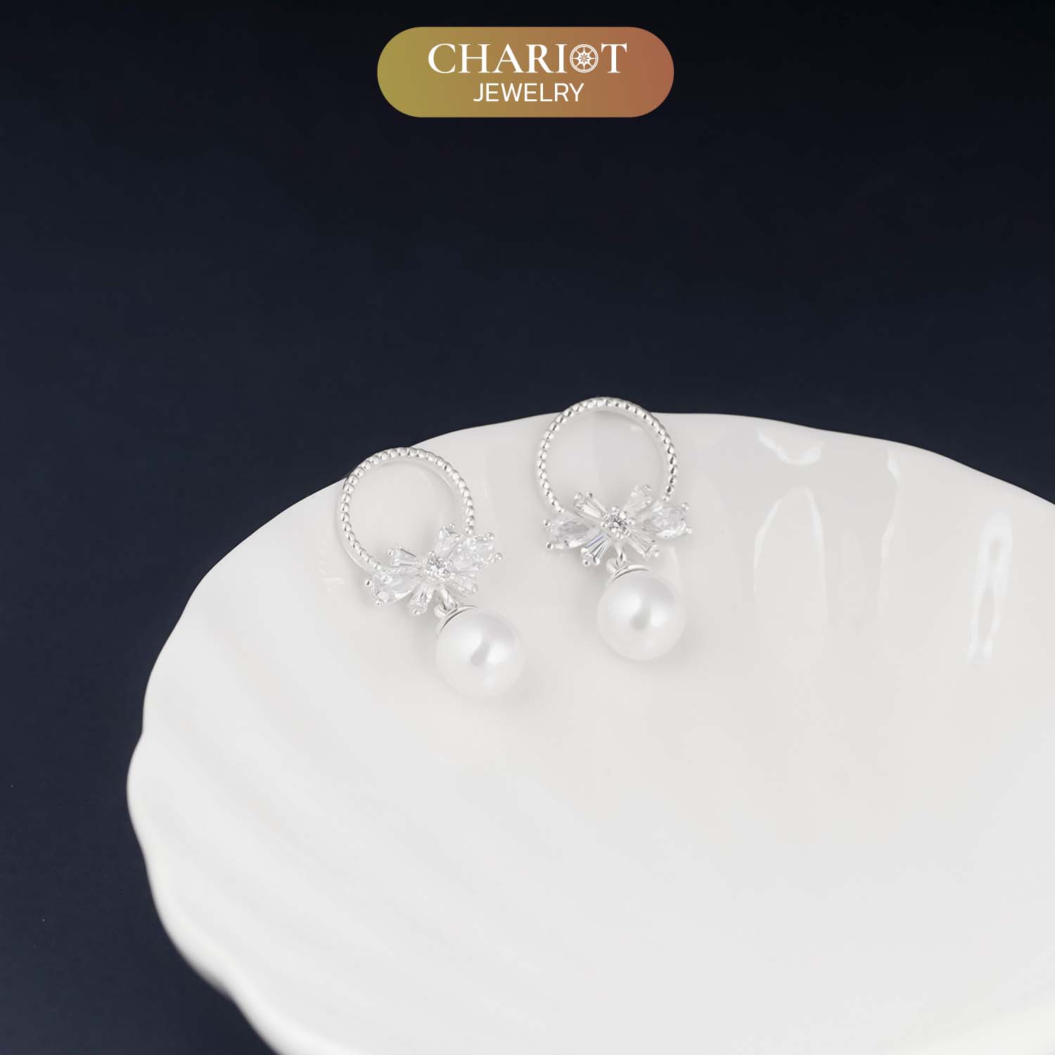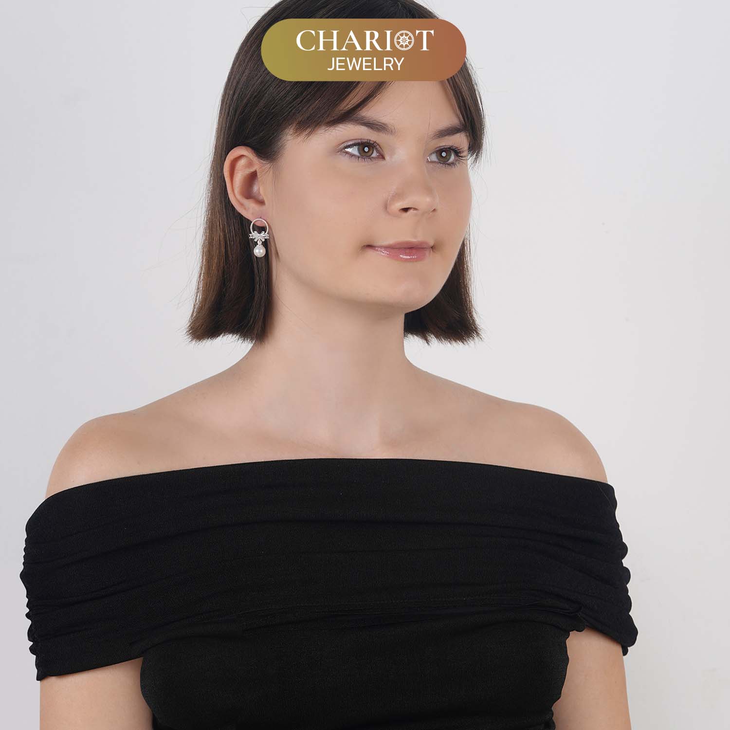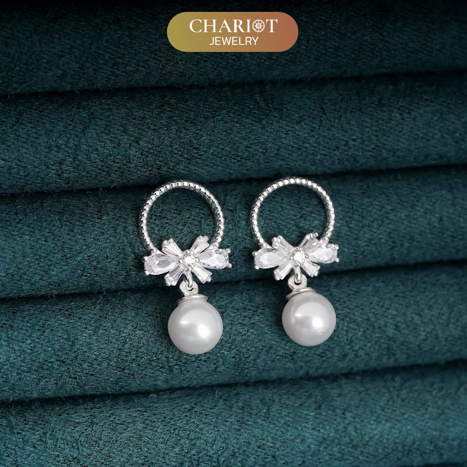 The final touch of elegance comes with a single, exquisite pearl that gracefully cascades from the earring’s base. This adds a touch of allure and captivating charm, complementing your natural beauty.