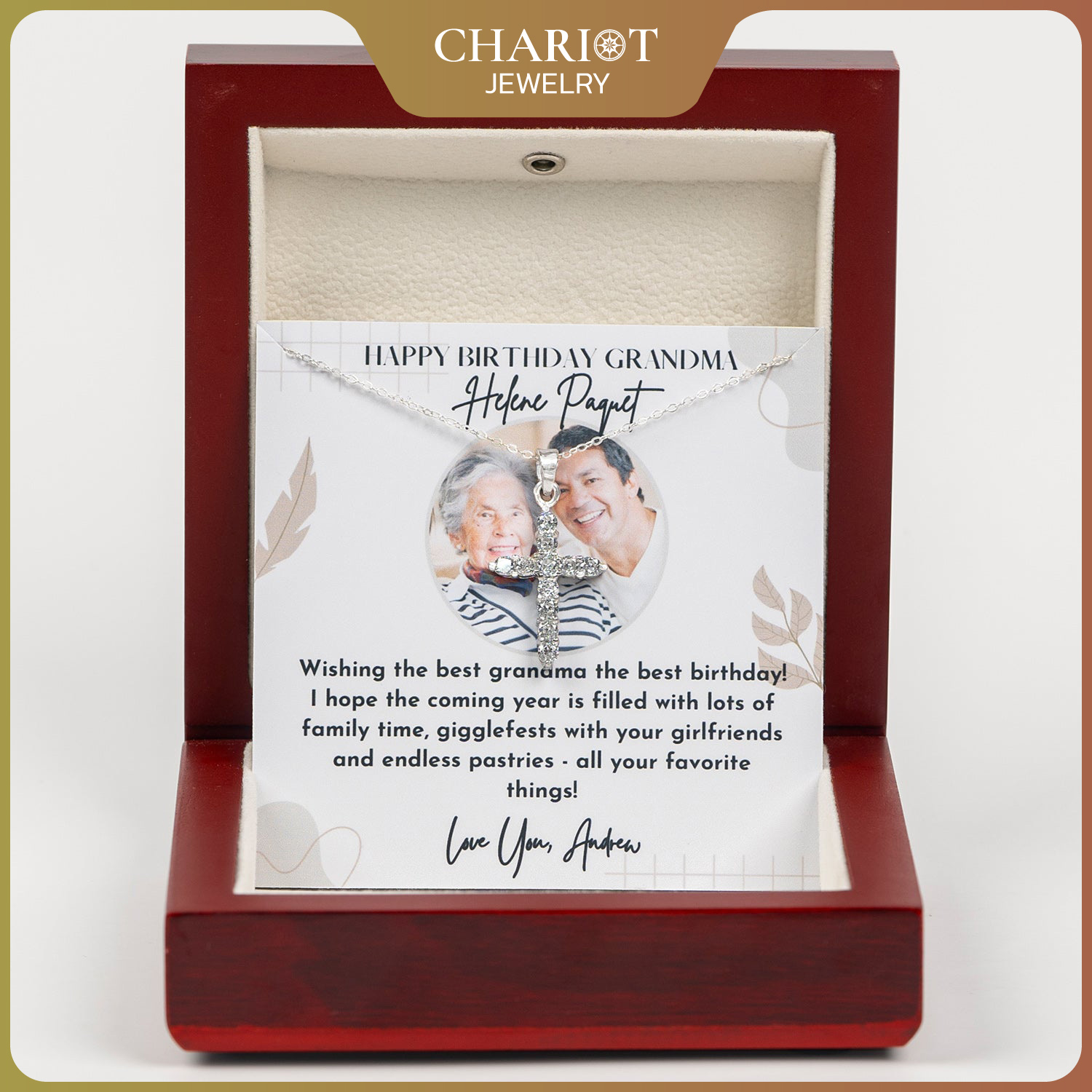 Personalized Gift For Birthday – Classic Cross Pendant Necklace – Happy Birthday Grandma, “Wishing the Best Granama the Best Birthday”.