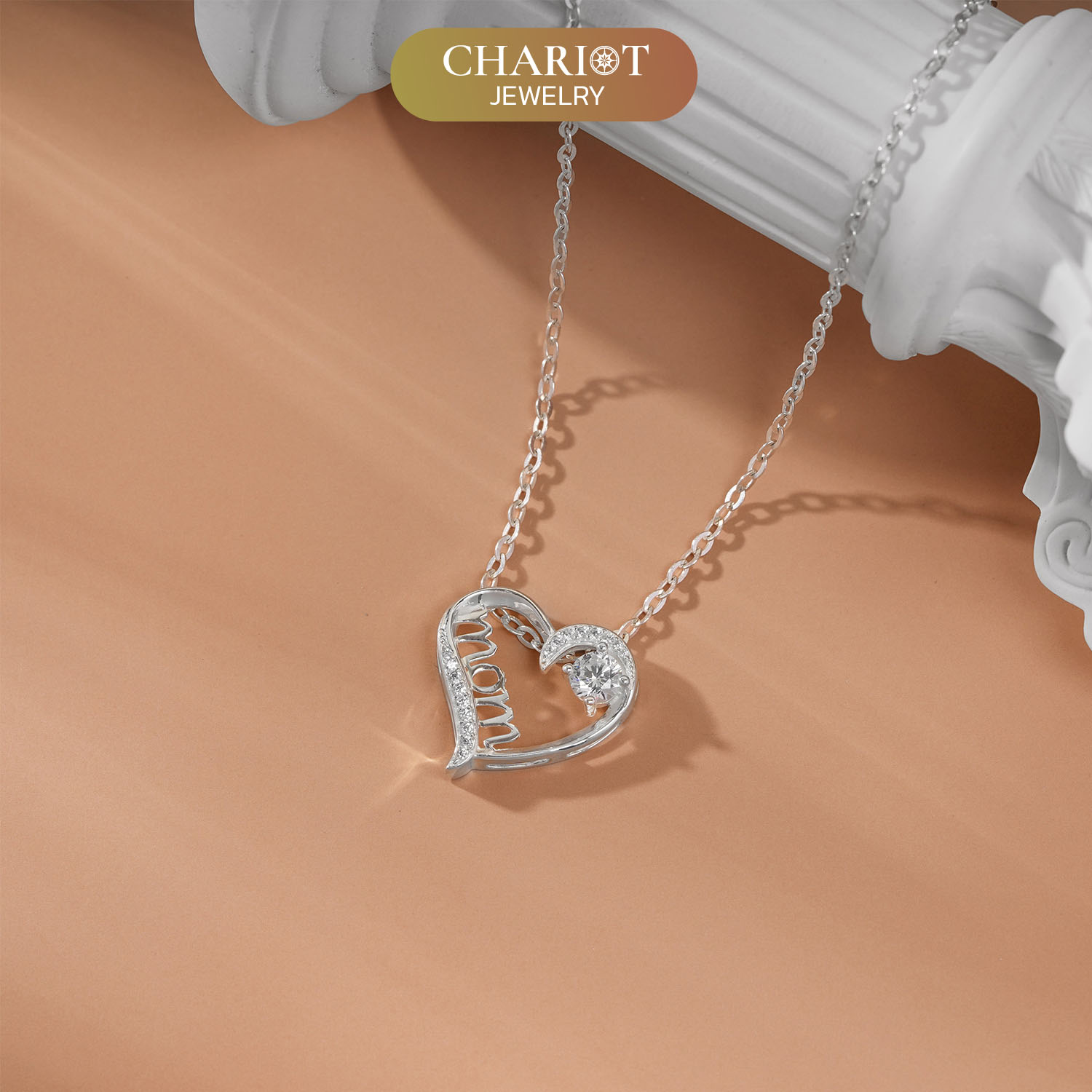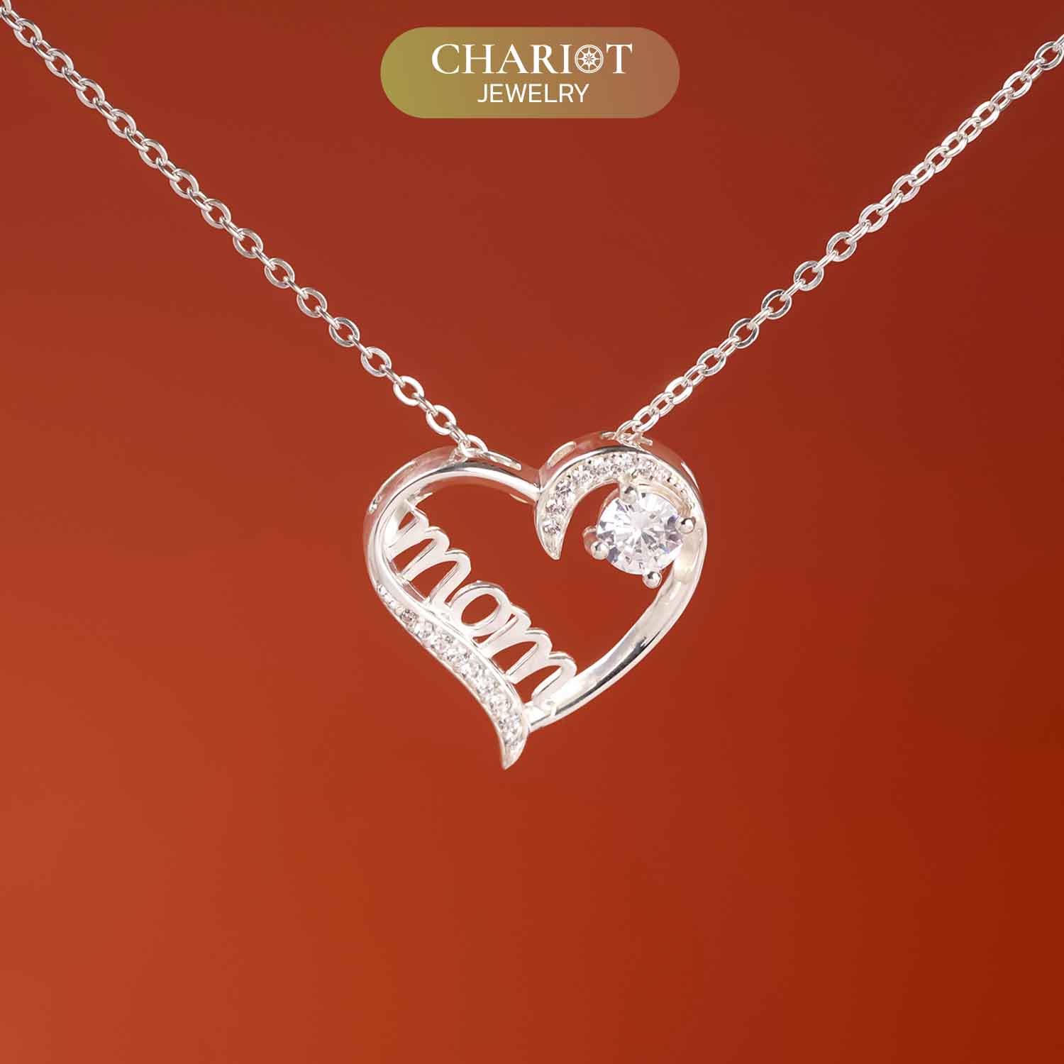 The Shiny Mom Necklace is a luminous testament to the profound love of a mother, meticulously crafted from the finest quality 925 sterling silver. Its mesmerizing design showcases a heart-shaped pendant graced with the endearing inscription of “Mom” on one side, while the other side glimmers with a resplendent circular gem. This exceptional piece serves as a magnificent representation of the unparalleled brilliance embodied in a mother’s enduring devotion, rendering it a deeply meaningful and refined accessory.