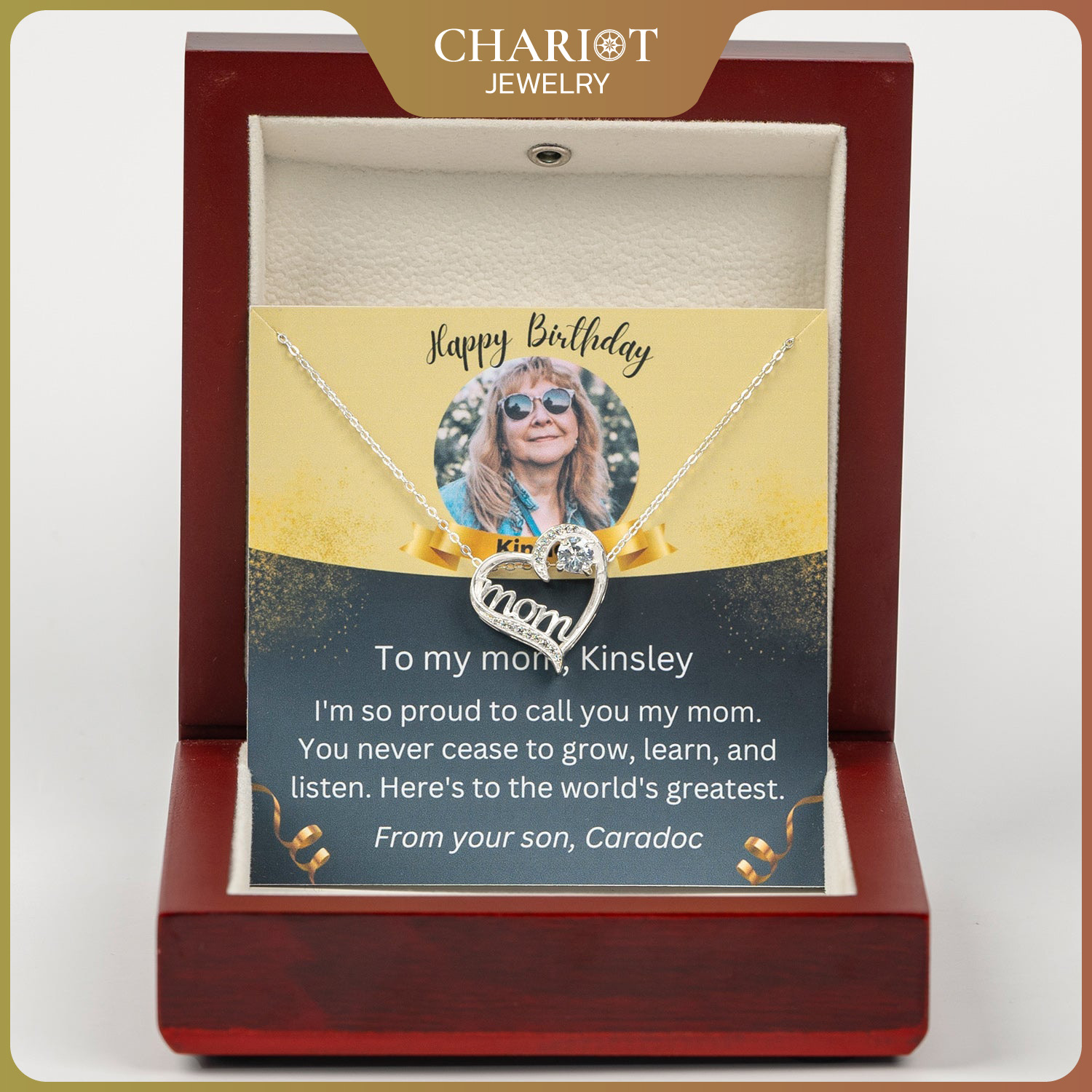Personalized Gift For Birthday – Shiny Mom Necklace – Happy Birthday, To My Mom From Your Son, “I’m so Proud to Call You My Mom”.