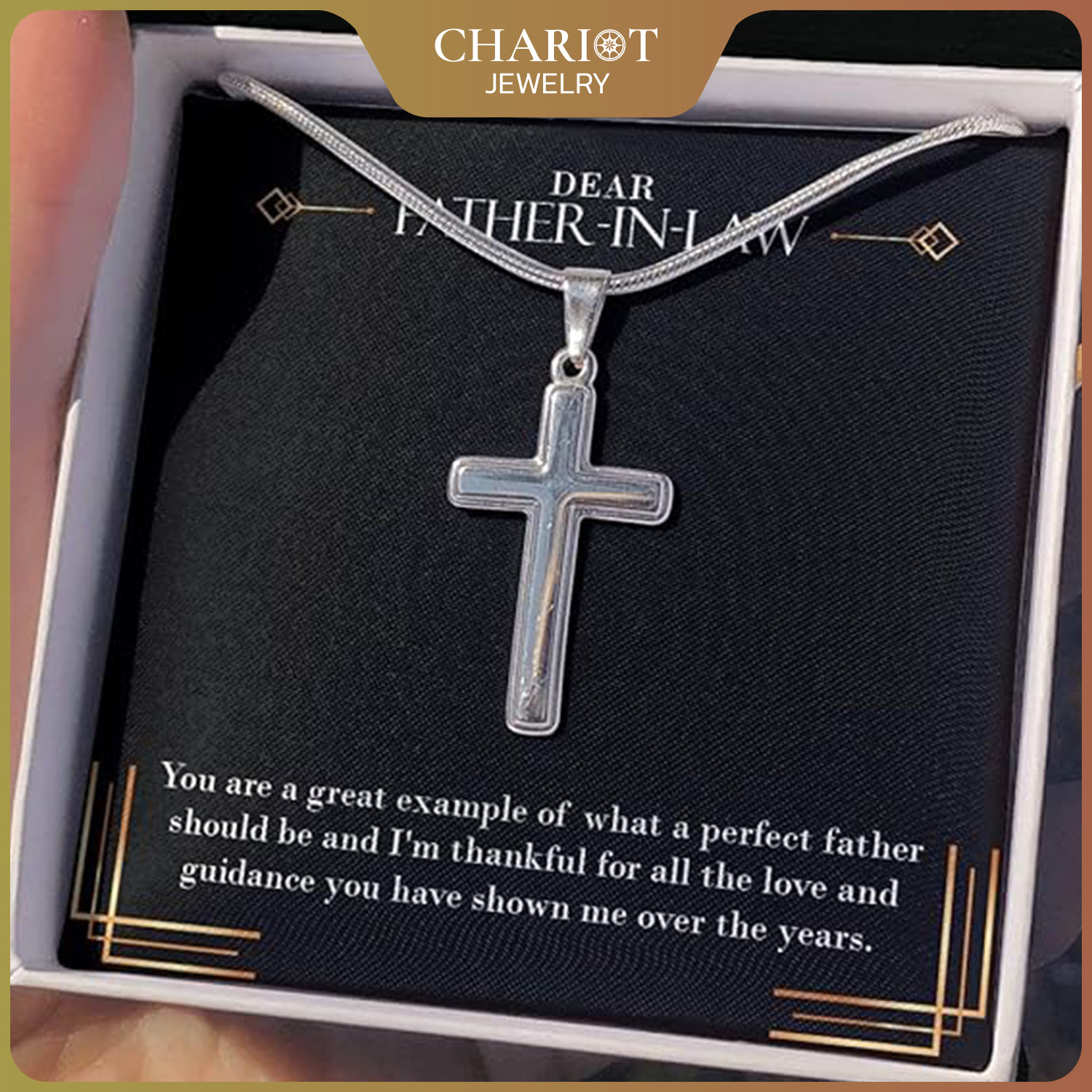 Personalized Gift For Father In Law – Cross Pendant Necklace -Thank you to My Father-in-Law for Raising and Taking Care of My Companion