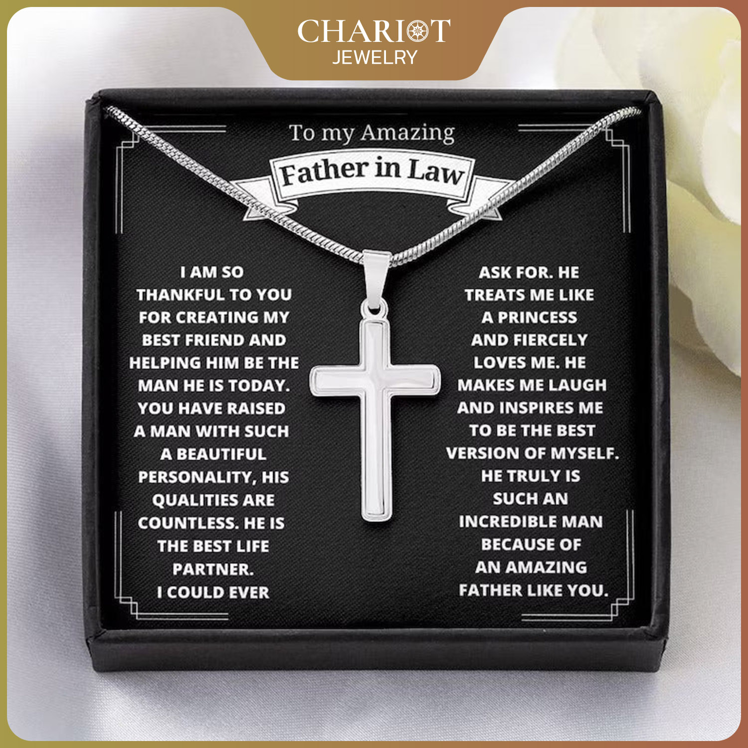 Personalized Gift For Father In Law – Cross Pendant Necklace – To My Father-in-law as Thank You to The One Who Cares For and Raises My Life Partner