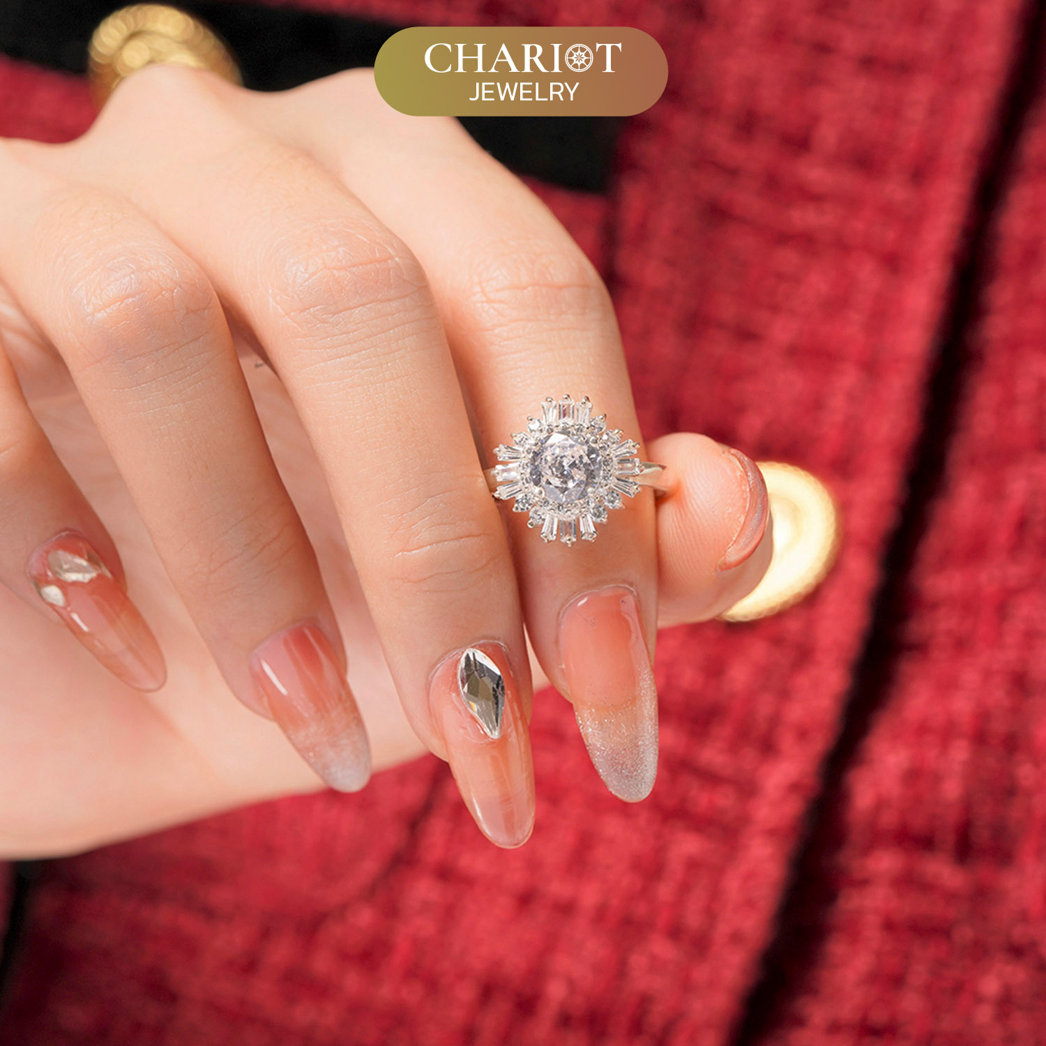 Let the bright light of the sun shine on your finger with the Halo Ring with Sun Rays. The “Halo Ring” is crafted in high-quality 925 silver, with cubic zirconia stones creating sparkling rays, symbolizing the warm embrace of the sun. The ring is delicately made, attracts all eyes and has a luxurious look. Moreover, it is a symbol of hope, joy, and luck. This ring will be the perfect finishing touch to any outfit, whether it’s a glamorous evening gown or a casual everyday look.