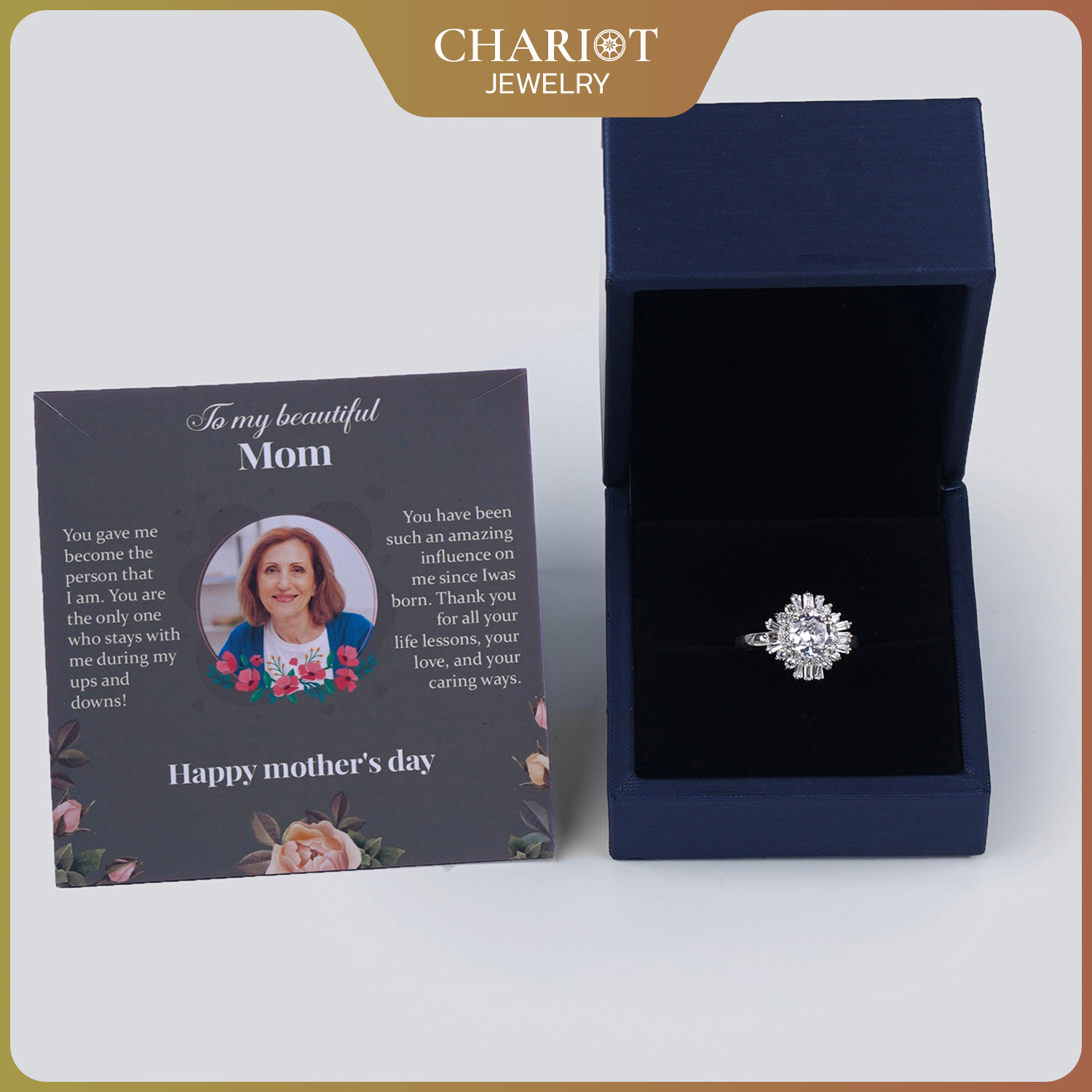 Personalized Gift For Mom – Halo Ring – Moissanite – Happy Mother’s Day, to My Beautiful Mother