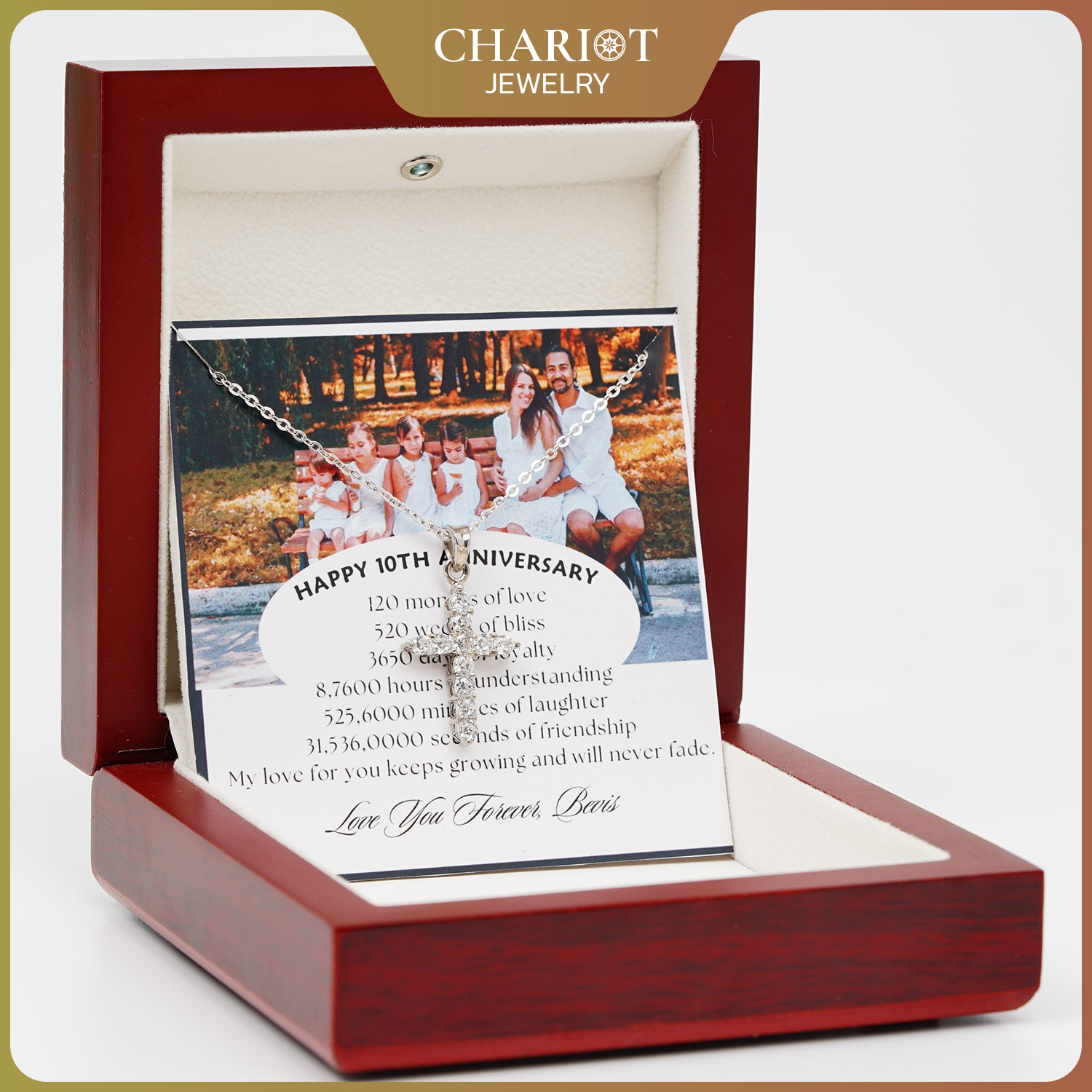 Personalized Gift from Husband to Wife – Classic Cross Pendant Necklace – 10th Wedding Anniversary Gift