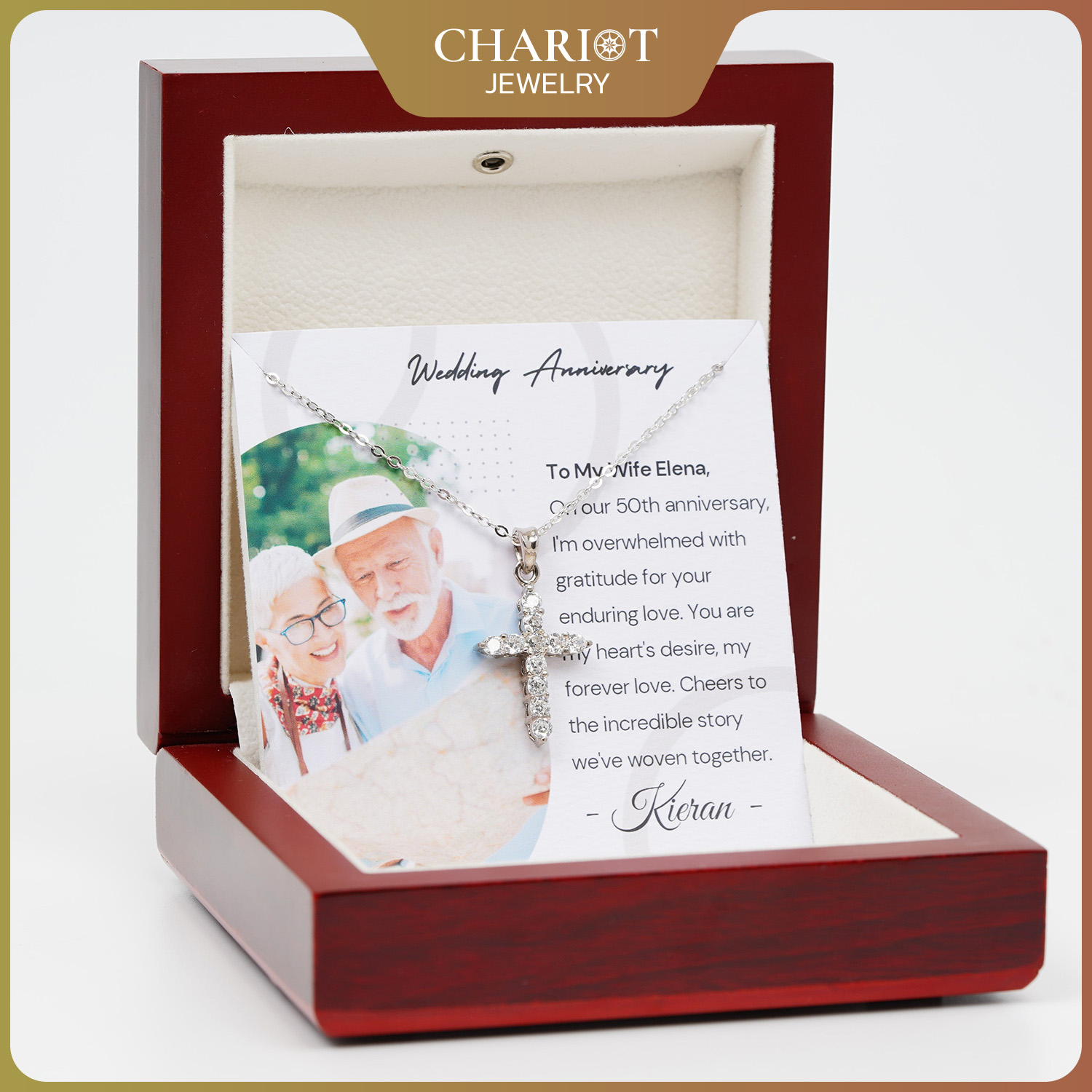 Personalized Gift from Husband to Wife – Classic Cross Pendant Necklace – 50th Wedding Anniversary Gift