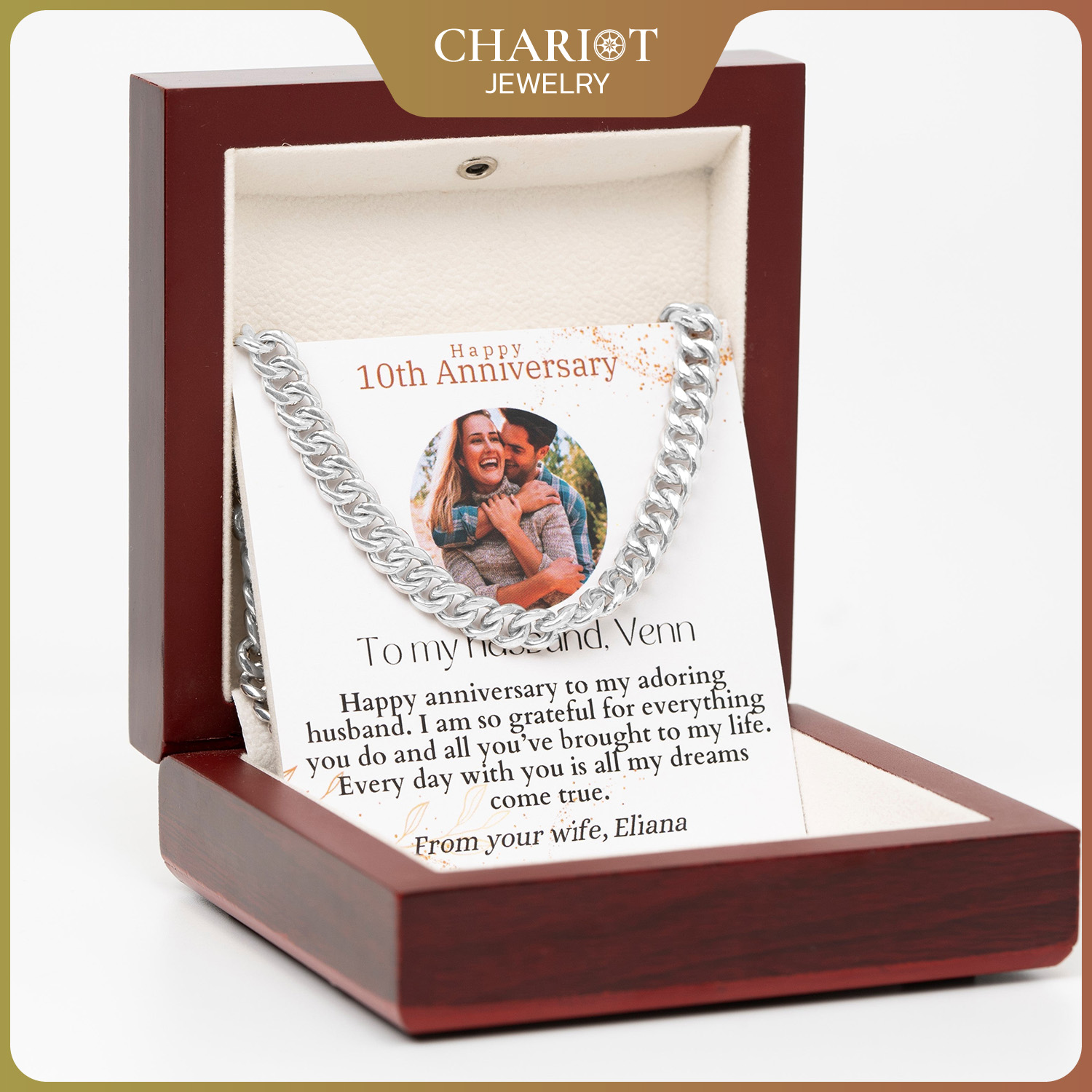 Personalized Gift from Wife to Husband – Curb Chain Necklace – 10th Wedding Anniversary to Husband Gifts