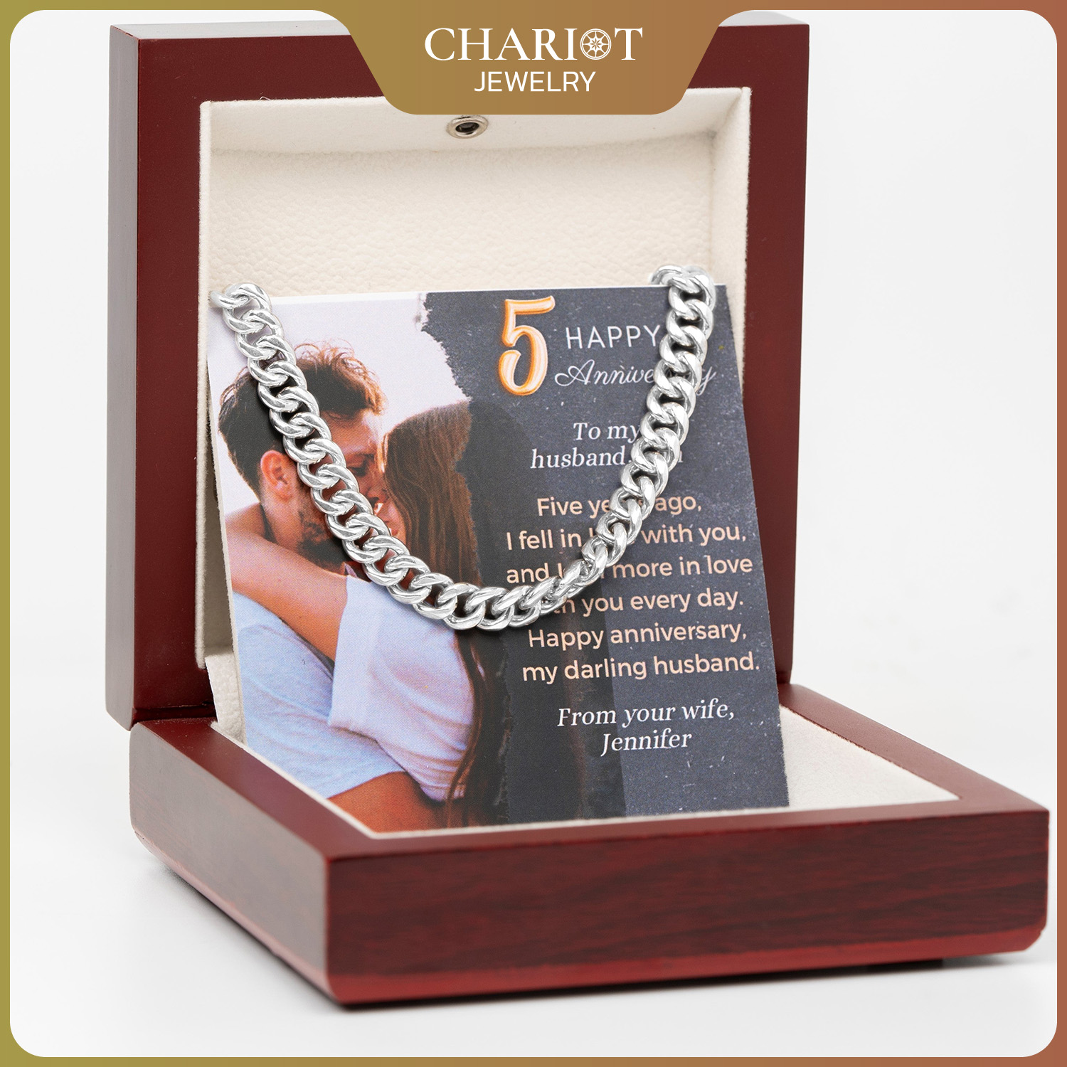 Personalized Gift from Wife to Husband – Curb Chain Necklace – 5th Wedding Anniversary to Husband Gifts