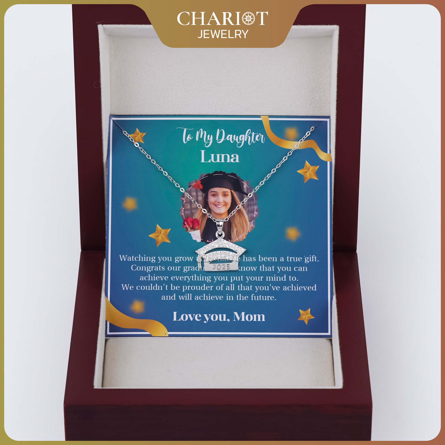 Personalized Gifts For Graduation – Graduation Stones Cap Necklace – Always Keep an Open Mind and a Compassionate Heart, Happy Graduation.