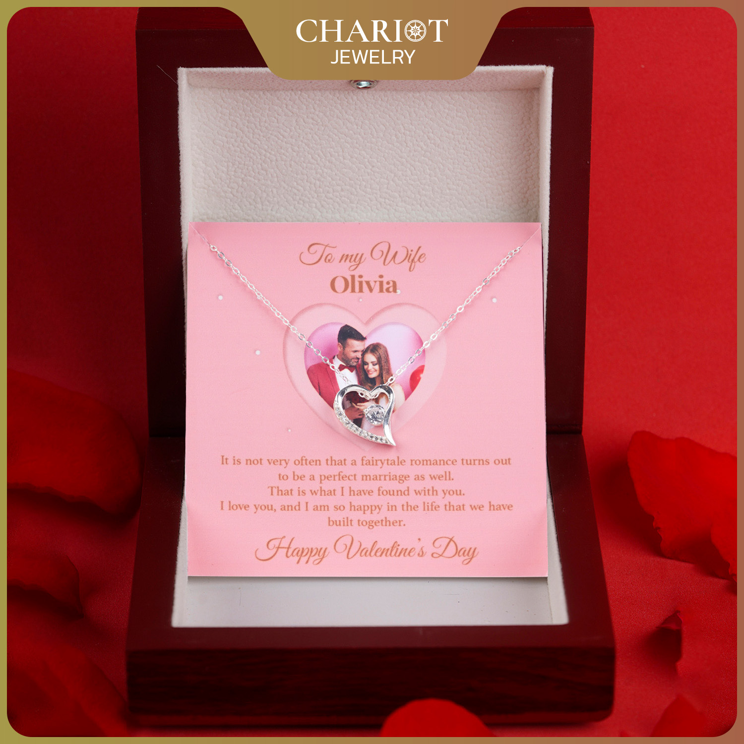 Personalized Gifts for Wife – Forever Love Necklace – Happy Valentine’s Day, Here’s to a Lifetime of Celebrating Our Love Together