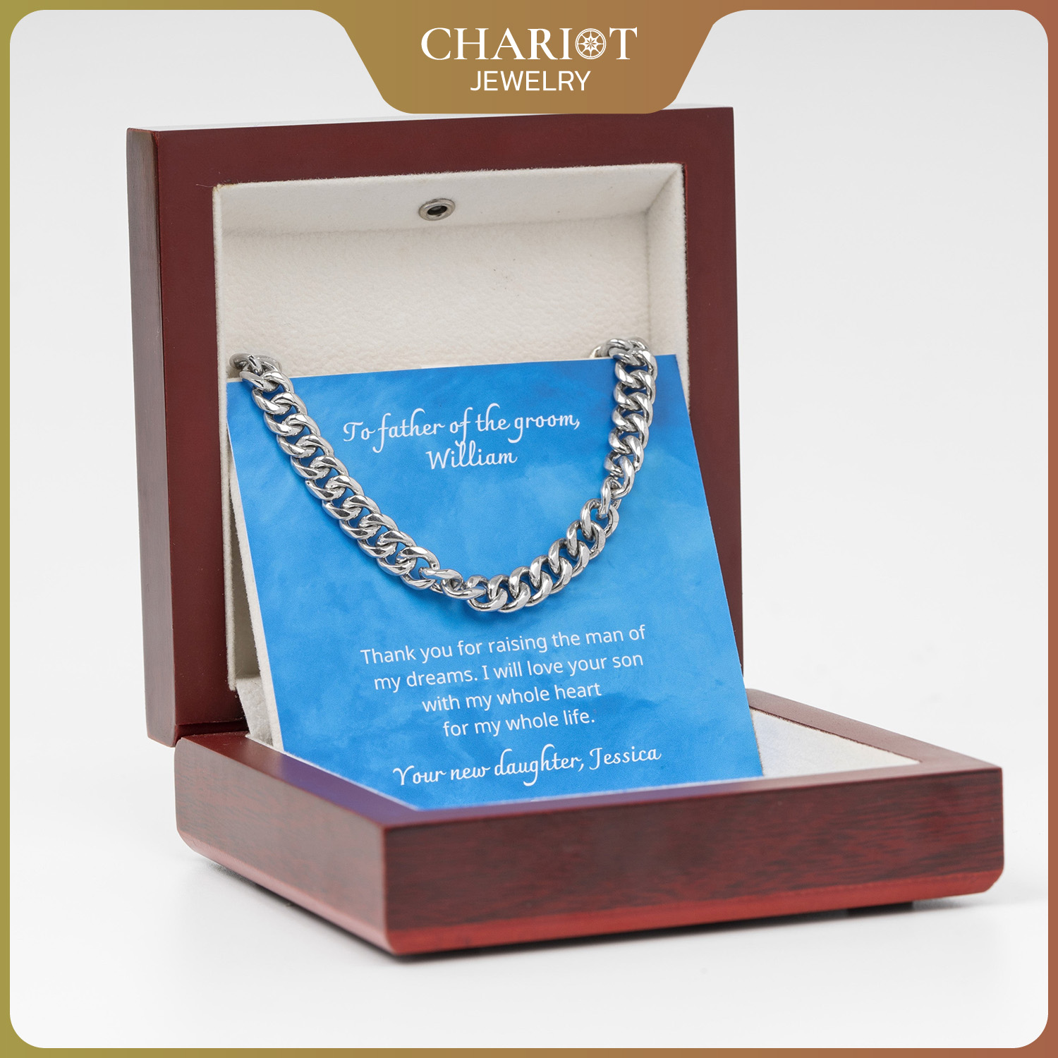 CCN1Personalized Gifts From Bride To Father In Law – Curb Chain Necklace – Thank you for Raising the Man of My Dreams