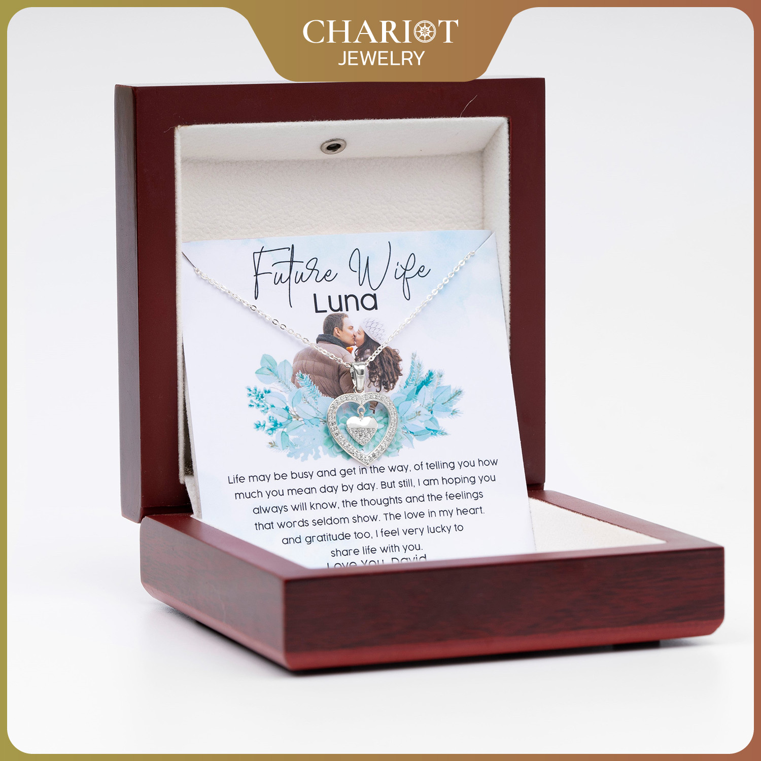 CP0015Personalized Gifts From Groom To Bride – Dangle Heart – I Feel Very Lucky to Share Life With You