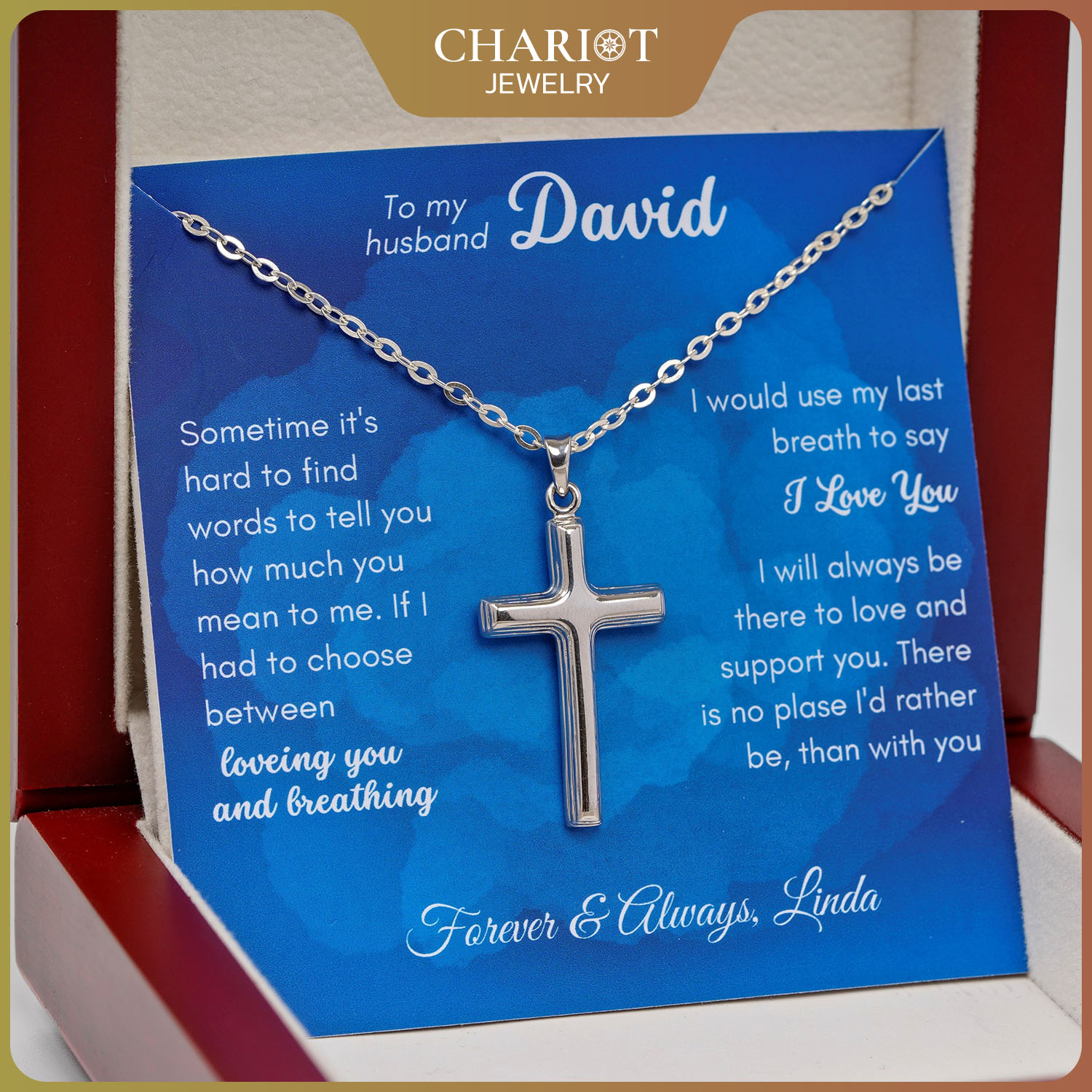 Personalized Gifts from Wife to Husband – Cross Pendant Necklace – To my Husband, Forever & Always
