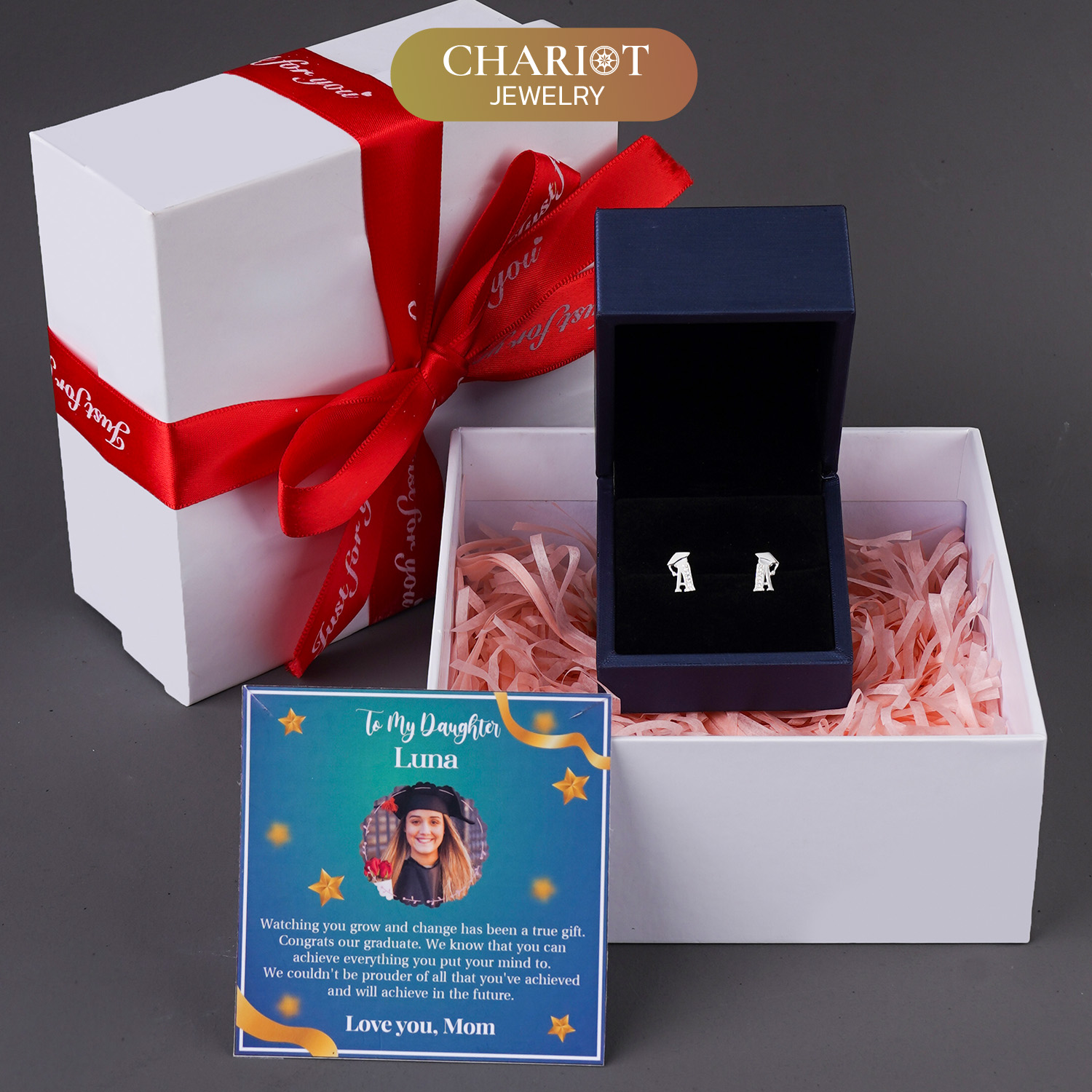 This exquisite jewelry piece serves as a heartfelt gift to celebrate the graduation milestone of your loved ones. Additionally, it comes with a free personalized message card, allowing you to upload a photo and include a heartfelt note to express your pride and best wishes.