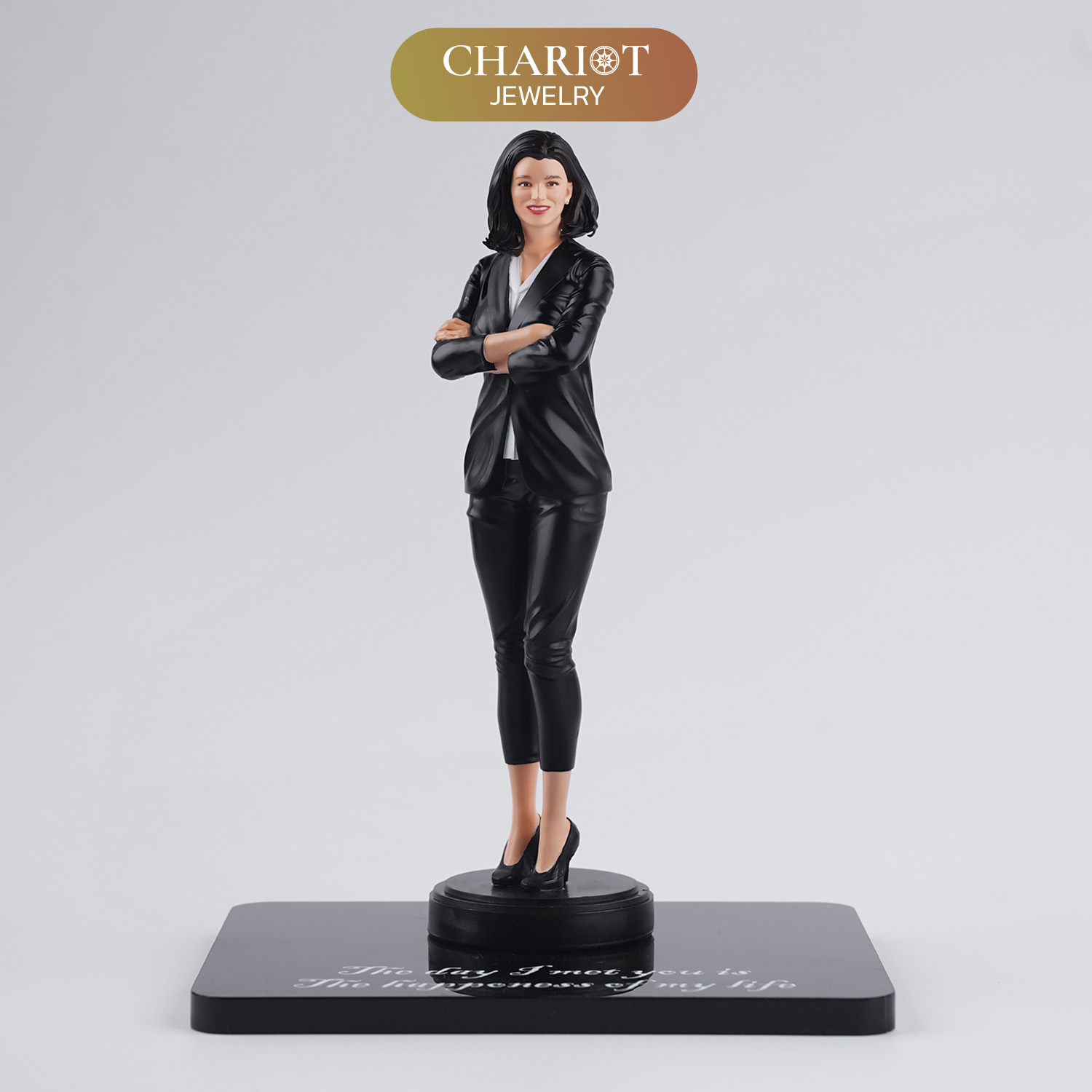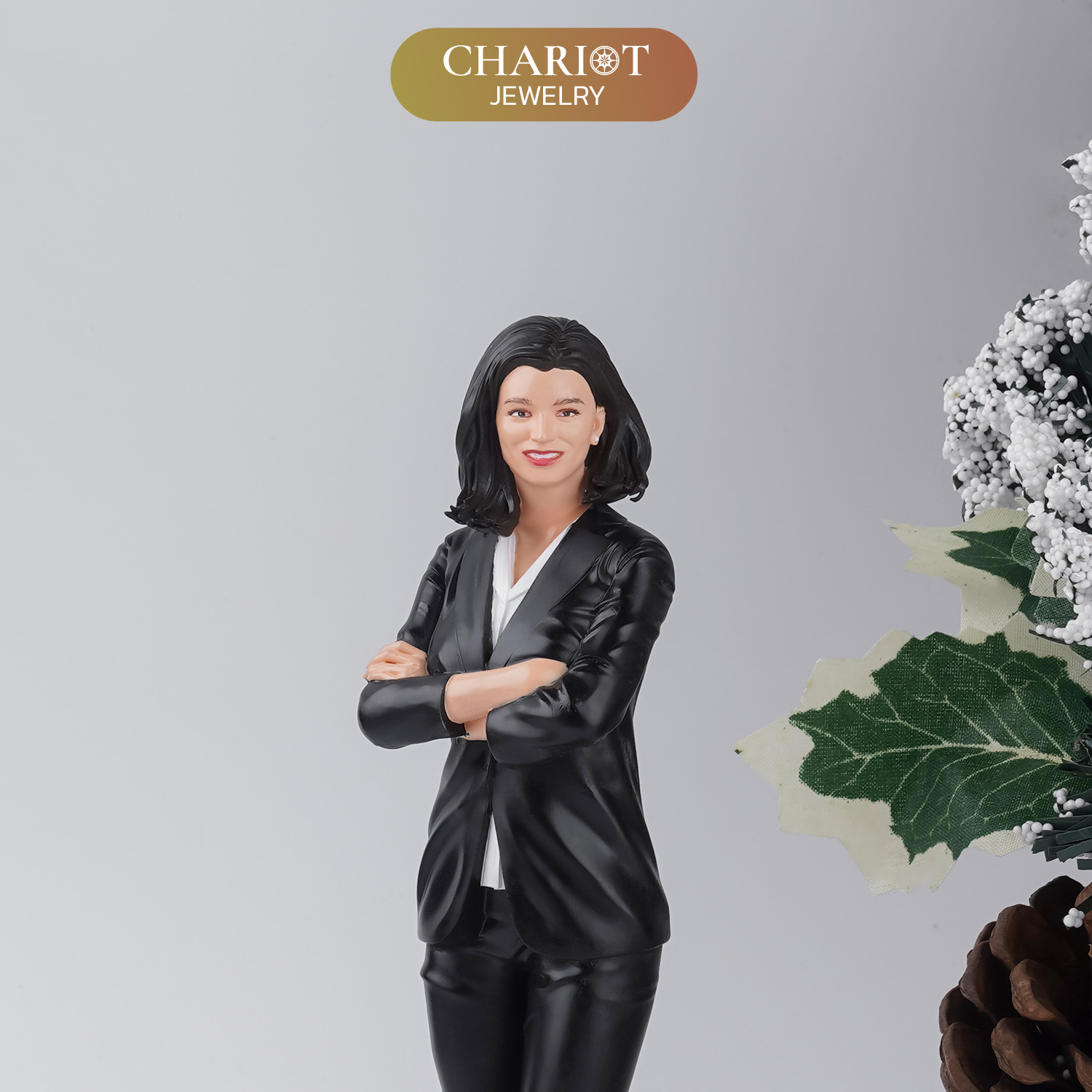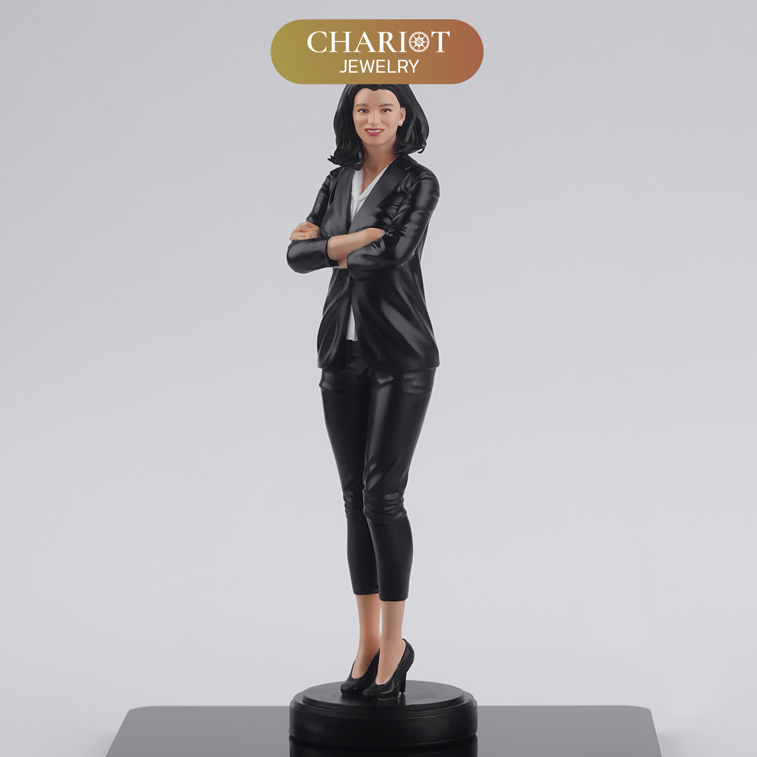 This stunning 3D resin figurine captures the essence of confidence and professionalism. Designed with precision, it features a poised woman standing with arms crossed, exuding charisma and determination. The sleek black suit and heels highlight a modern and elegant style, while the subtle details in her expression and posture bring the figure to life.