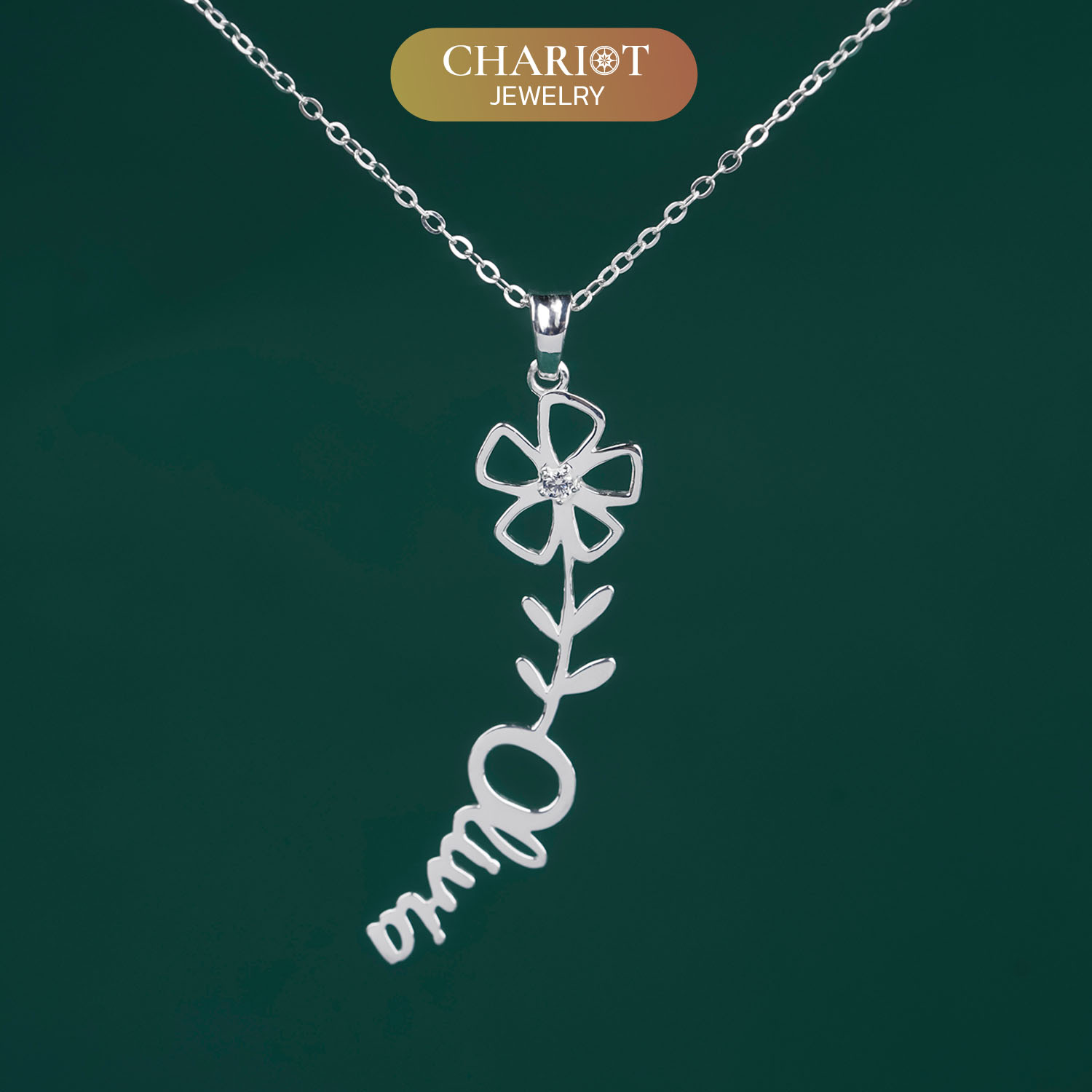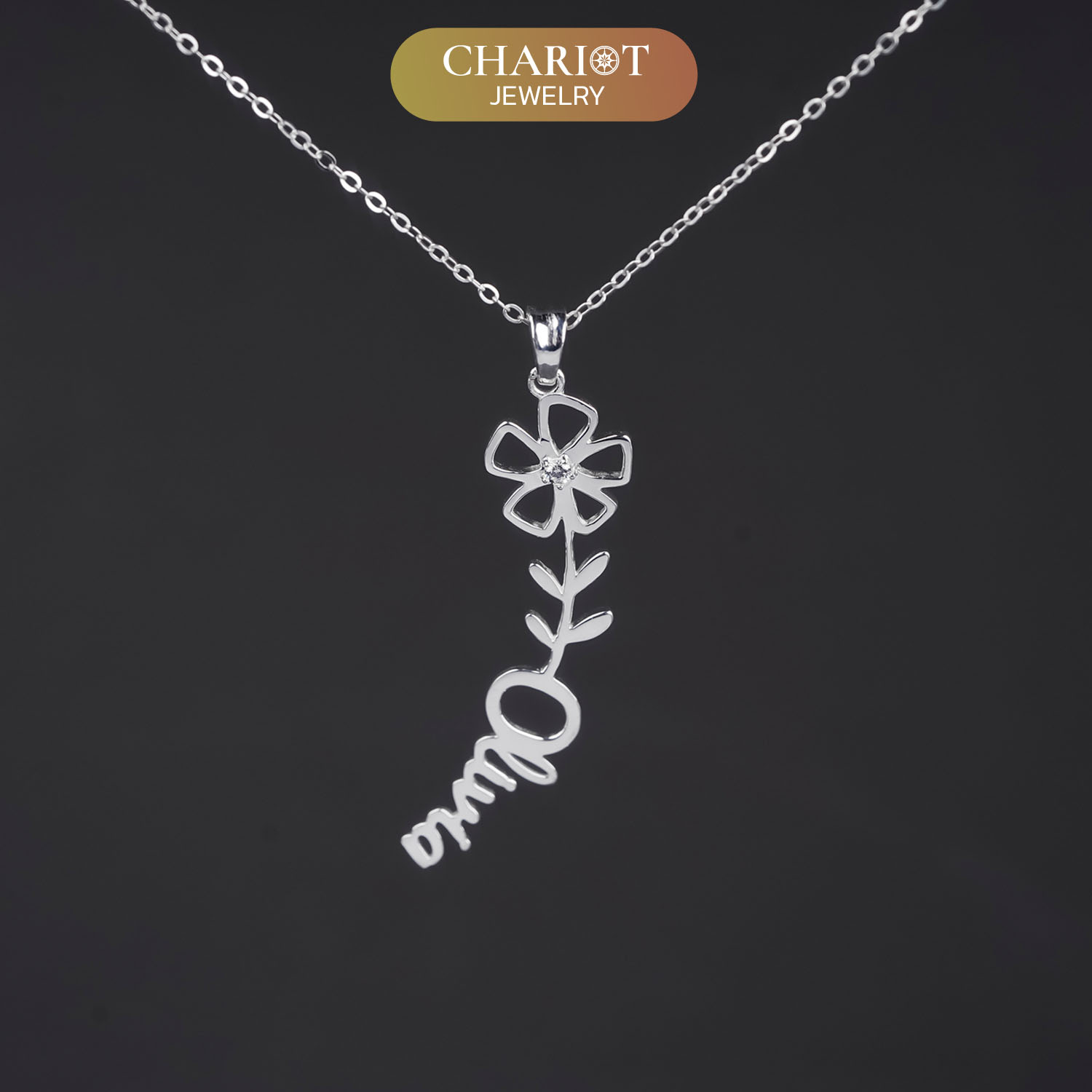 The Personalized Flower Name Necklace is an exquisite blend of nature-inspired elegance and personal customization, meticulously crafted from high-quality 925 sterling silver. Featuring a delicate floral design intertwined with a customized name, this necklace embodies beauty, individuality, and charm. The silver material ensures a brilliant shine, long-lasting durability, and is safe for all skin types. The intricate flower motif, combined with the flowing script of the name, creates a harmonious design perfect for those who love nature and meaningful accessories. This necklace makes a thoughtful and unique gift for special occasions such as birthdays, anniversaries, or Valentine’s Day, symbolizing growth, love, and connection. Personalize it with a name to create a stunning keepsake that celebrates individuality and style.