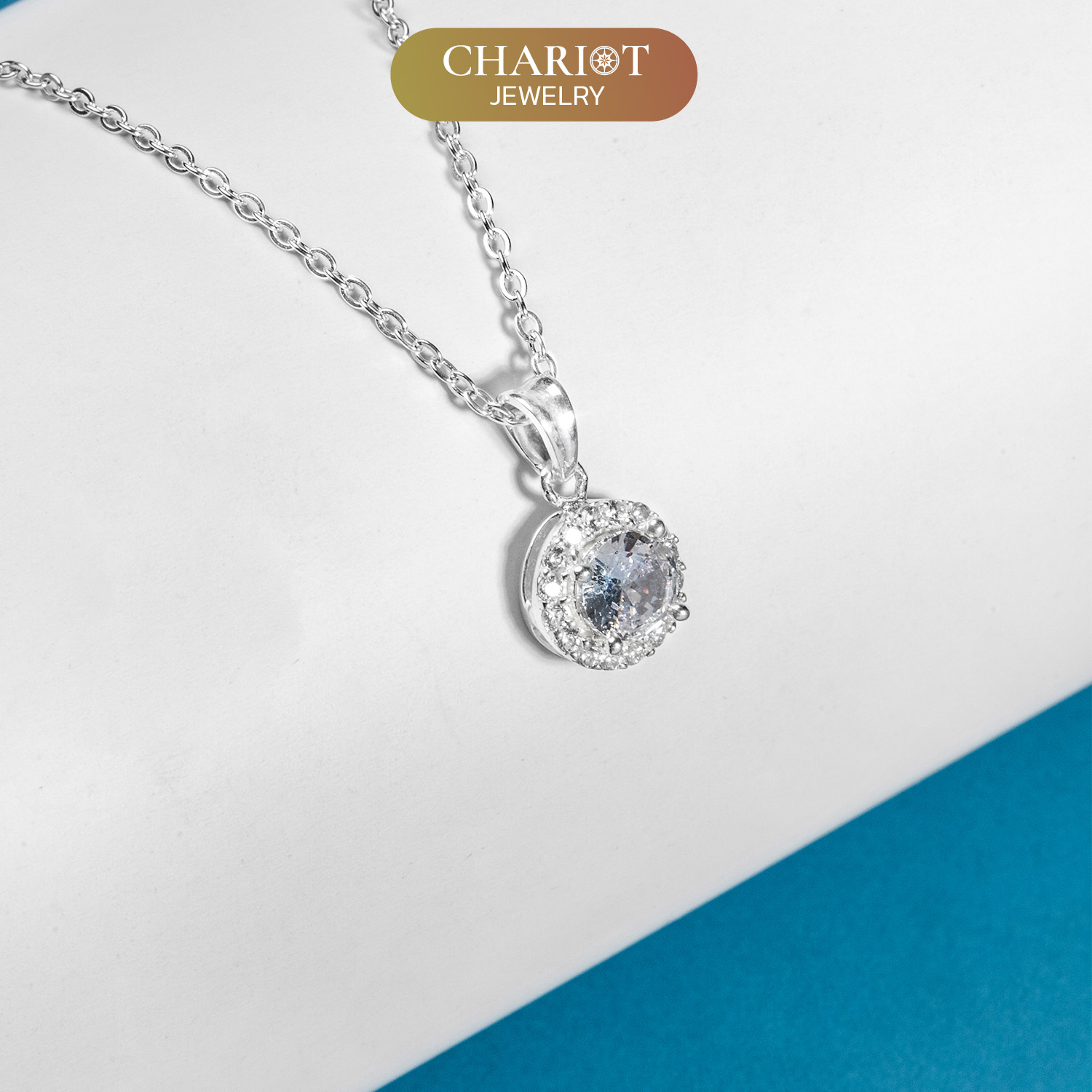 This necklace is crafted from high-quality sterling silver and shimmering gemstones. Its exquisitely designed two-layered circular pendant with a radiant center stone and sparkling surrounding stones. The chain length is not only adjustable for a comfortable fit but is also hypoallergenic and safe for sensitive skin.