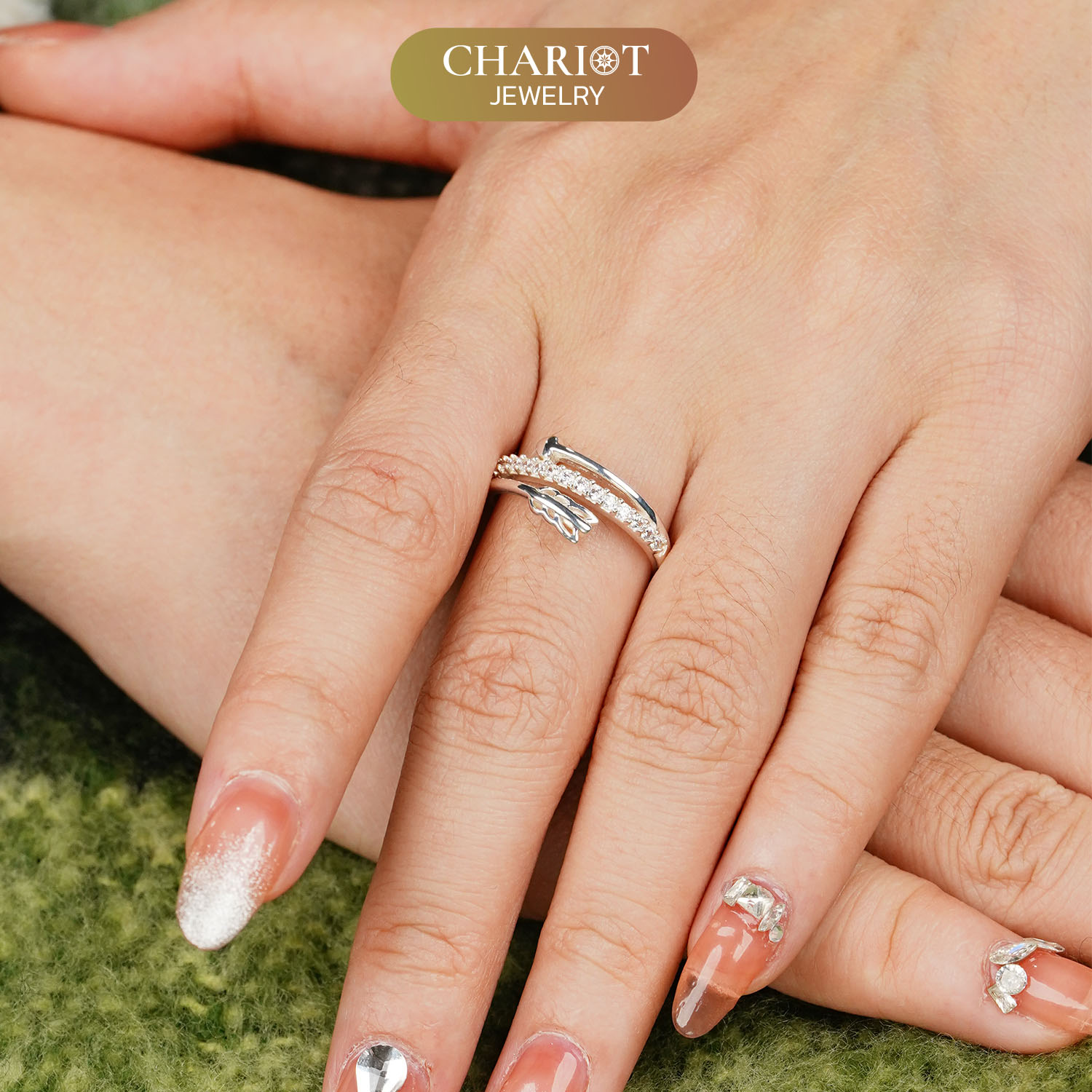 The ring’s feminine design is further enhanced by the sparkle of shimmering stones. These stones represent the woman’s inner radiance and beauty, a reminder that she shines brightly from within.